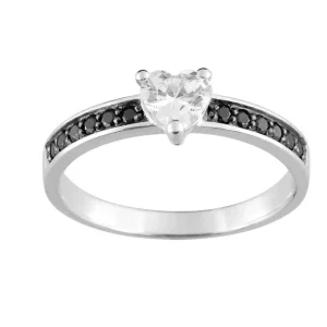 Pixies – Bague Solitaire Coeur & Oxydes Noirs Argent 925