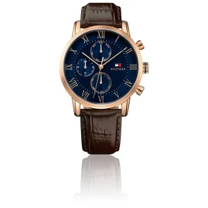 Tommy Hilfiger – Montre Homme Kane Cuir Marron Cadran Bleu