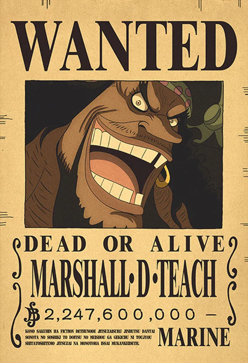 Marshall D. Teach, alias Barbe Noire, est un pirate ambitieux aux desseins mystérieux. Possédant des pouvoirs uniques qui le distinguent de ses pairs, son ascension rapide et son rôle dans le monde de One Piece en font un personnage fascinant et imprévisible.
