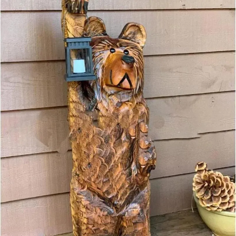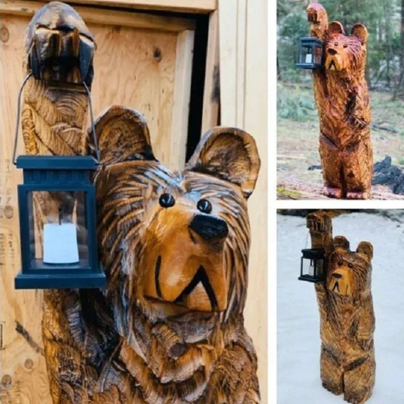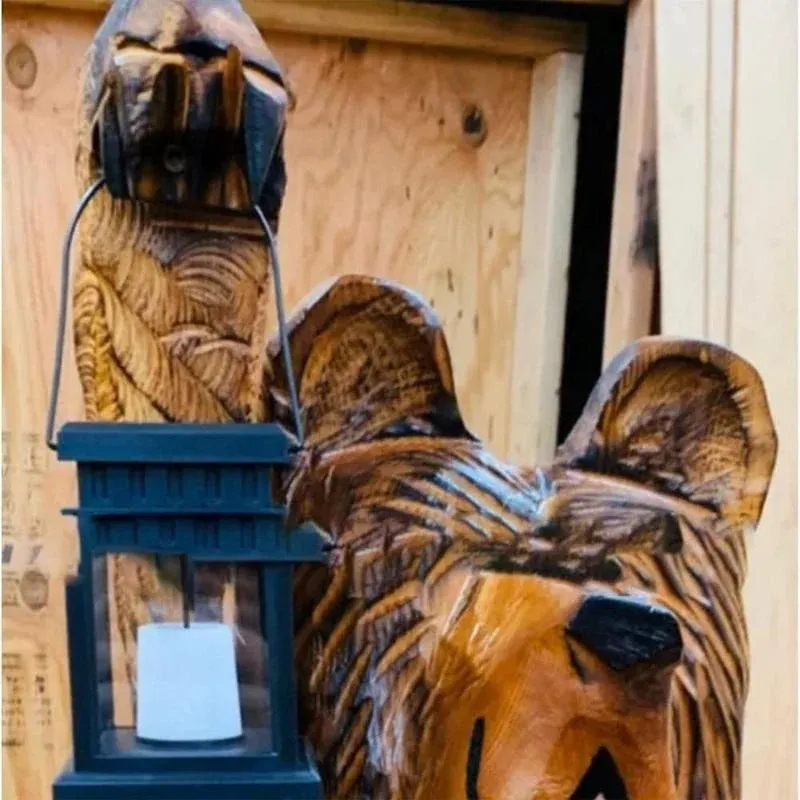- 1 x Ours sculpté avec lanterne