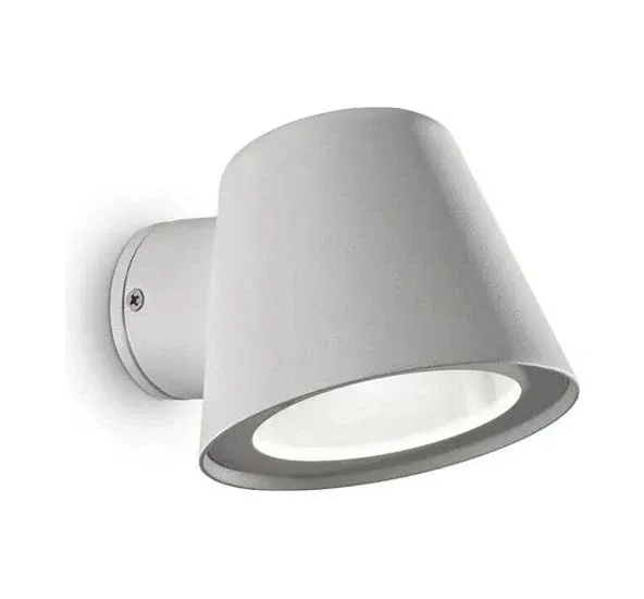 Applique extérieure grise GAS. Corps lumineux en aluminium moulé sous pression et verni à poudre. Diffuseur en verre transparent trempé et sablé. Egalement disponible dans les finitions: anthracite, blanc, coffee ou noir.