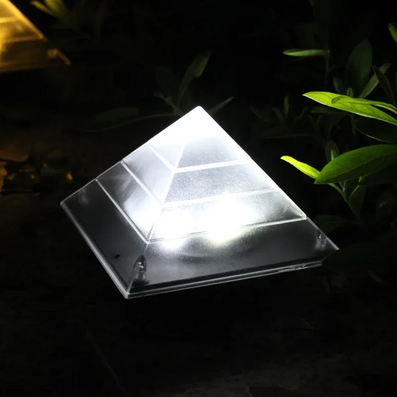 Balise solaire sur piquet à pelouse, sa tête forme un pyramide de cristal s’intègre parfaitement à tout jardin ou allé de maison. La LED très lumineuse est visible de très loin.