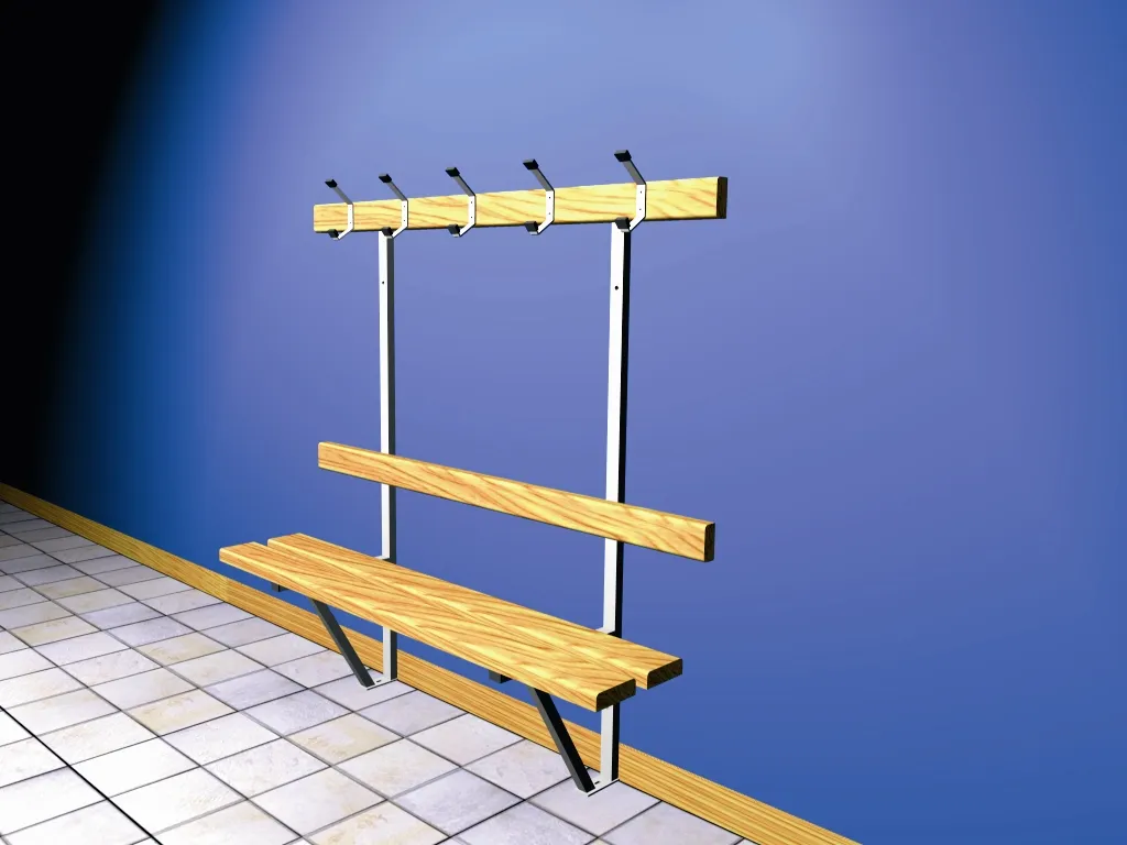 Assise + porte patères + dossier – BOIS EXOTIQUE – SUPPORT GALVANISE + RAL BLANC –