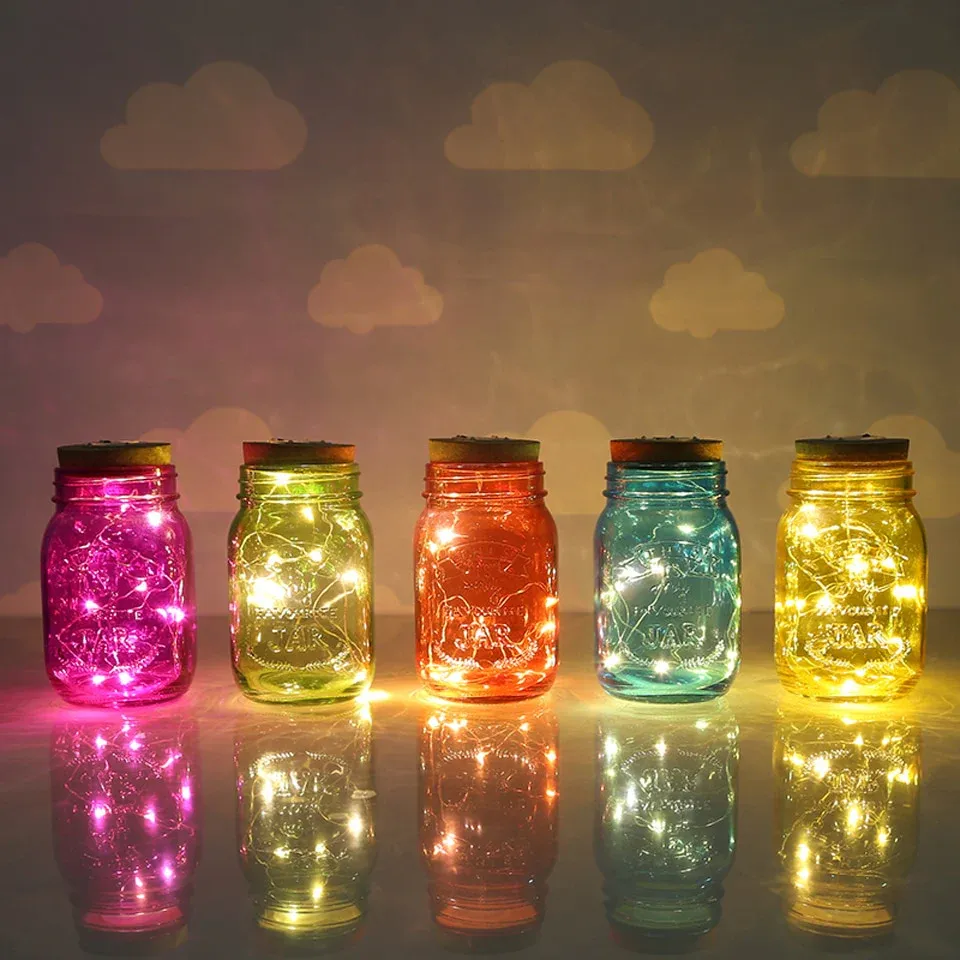 Transformez vos Mason Jar vides en les meilleures déco pour vos différents événements ! Il vous suffit de charger complètement votre Couvercle pour Bocal à LED à la lumière du soleil et de les allumer la nuit !