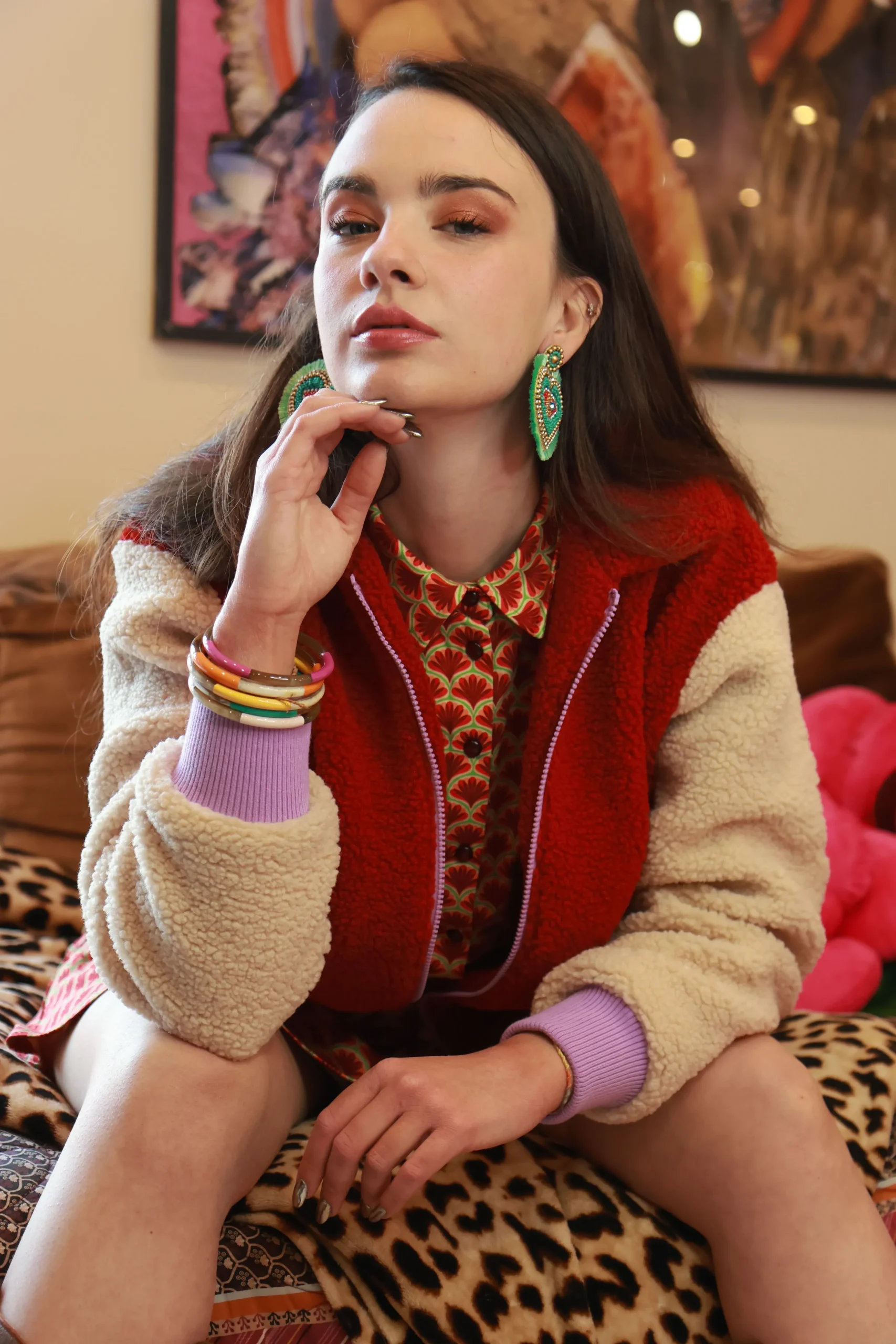 Fais sensation avec cette veste Teddy oversized en bouclette bicolore ! Elle associe des teintes chaudes et pastel (brique, crème et rose lilas) pour un look qui sort du lot. Son tissu texturé non extensible t’offre un confort tout en structure, parfait pour un style décontracté mais travaillé. La fermeture zippée contrastée et les poches latérales viennent compléter ce modèle iconique.