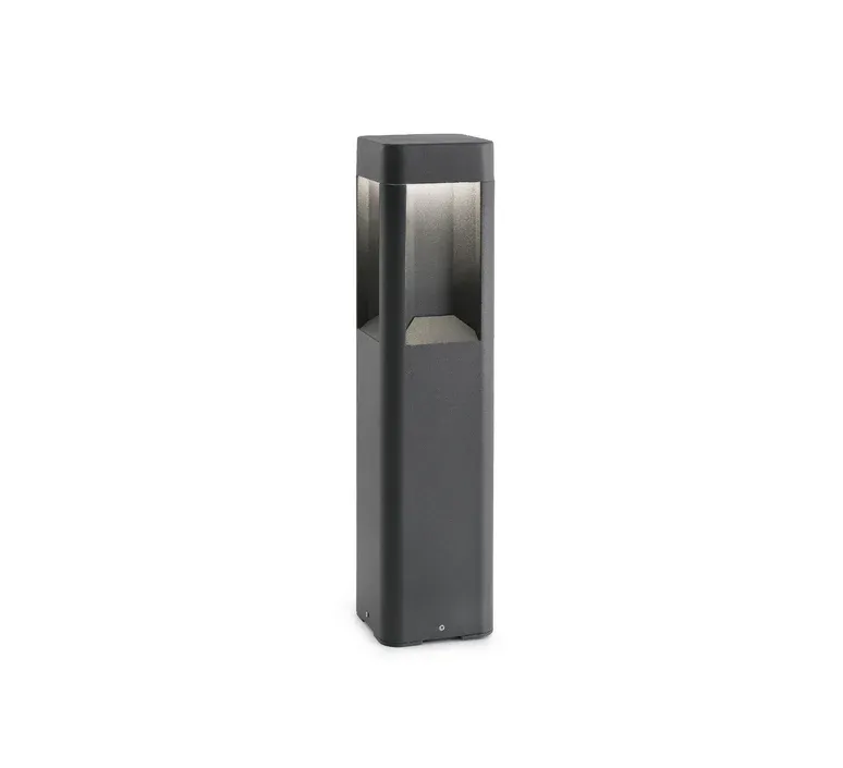 Cette borne d’extérieur est fabriquée en aluminium et polycarbonate opale.