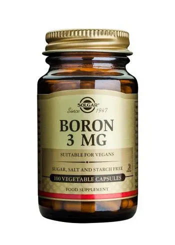 By taking 1 capsule of Boron, suitable for Vegans and Vegetarians, you will have an intake of 3 mg of boron.