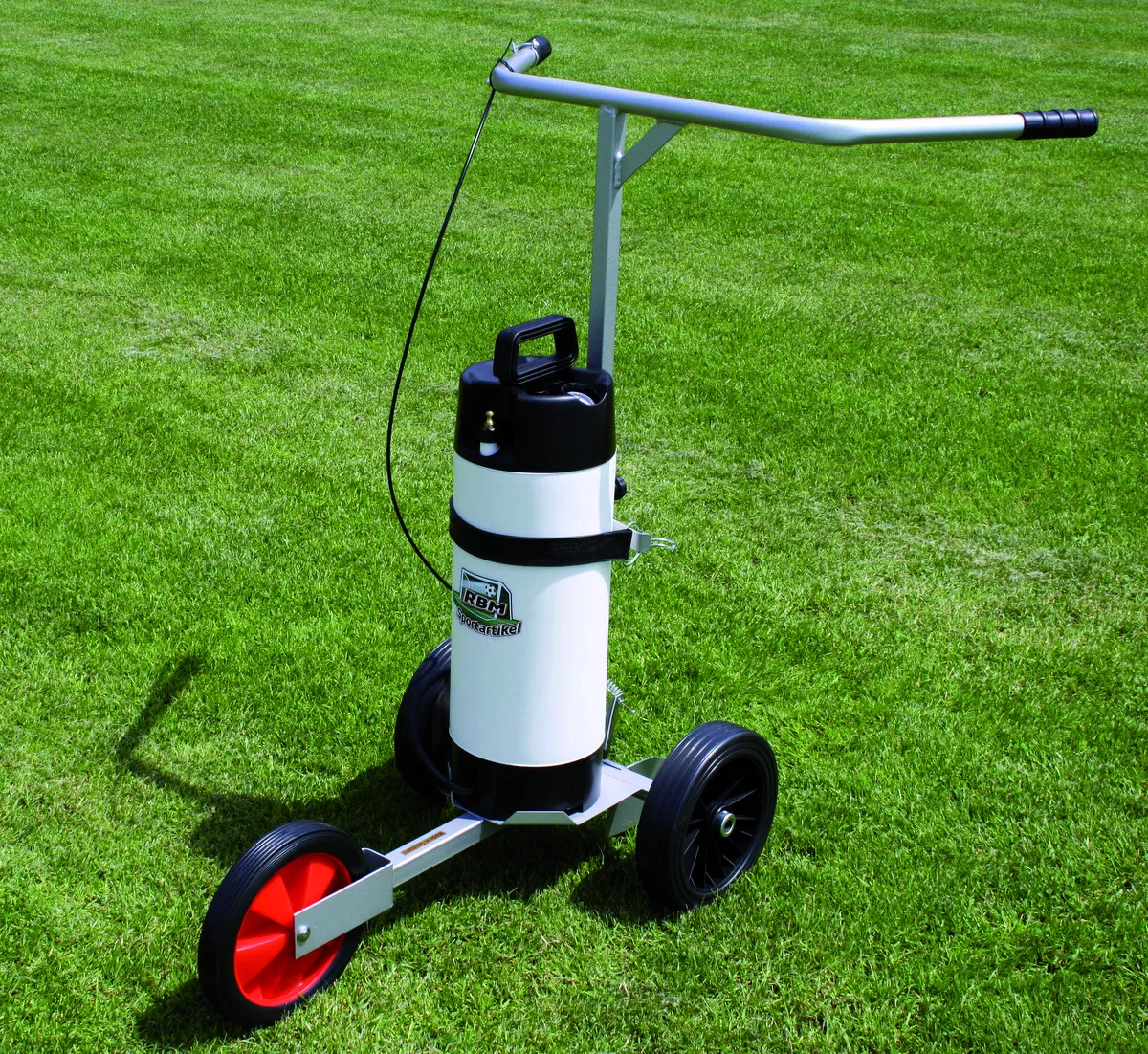 Pour traçage à la peinture par pulvérisation –Pompage manuel – largeur de traçage de 5 à 12cm – Roues pleines caoutchoutées diamètre 26cm –