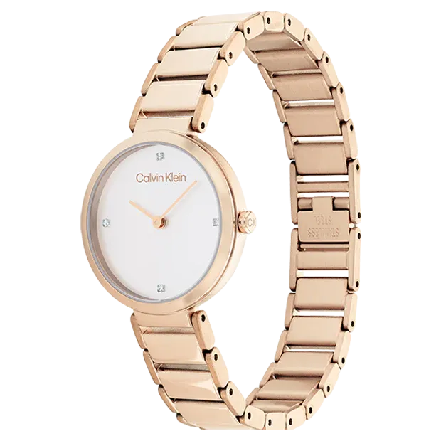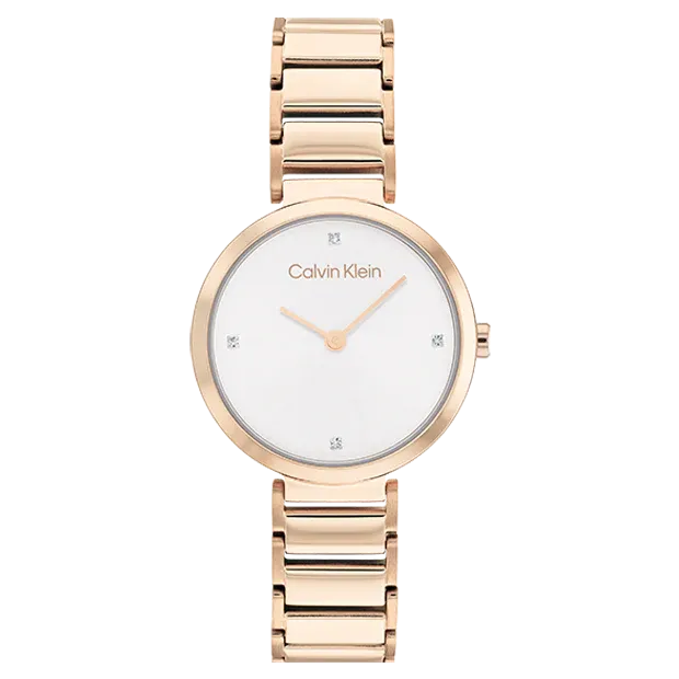 Calvin Klein la célèbre marque chic et tendance du moment. Célébrez-la en portant la montre femme de la collection Timeless au bracelet en acier bicolore, un retour au classique. Les détails des oxydes dans le cadran viendront faire toute la différence.