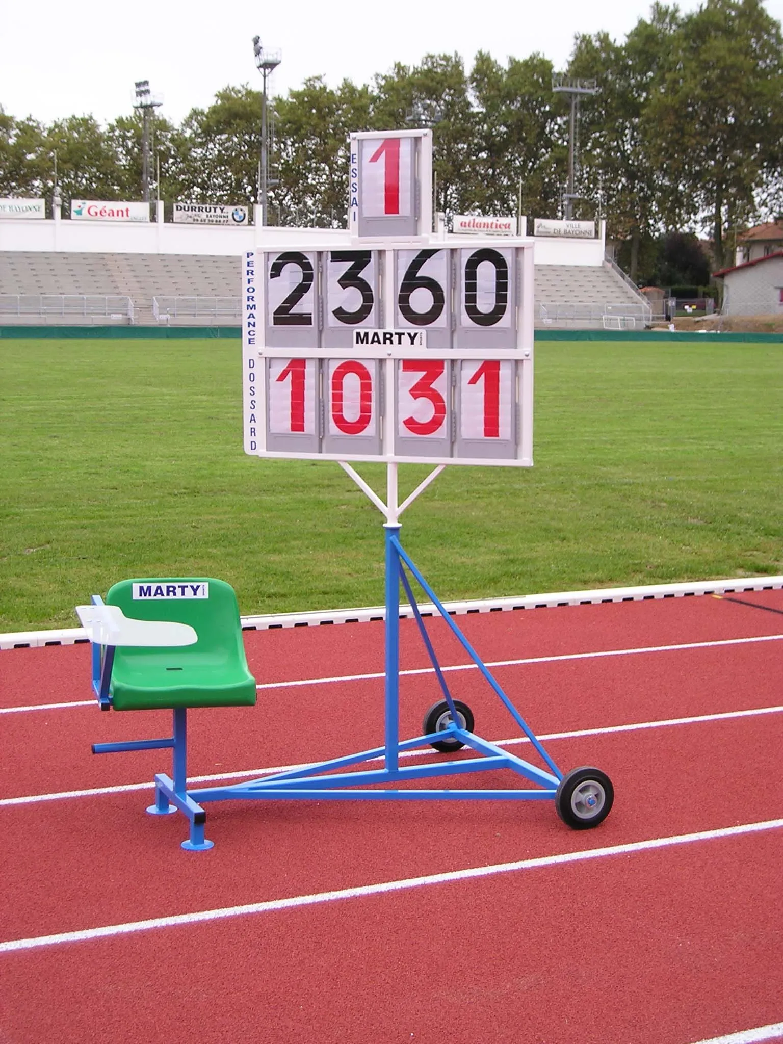 INDICATEUR DE PERFORMANCES 9 chiffres poussoirs pour le numéro de dossard, de l’essai et la performance.