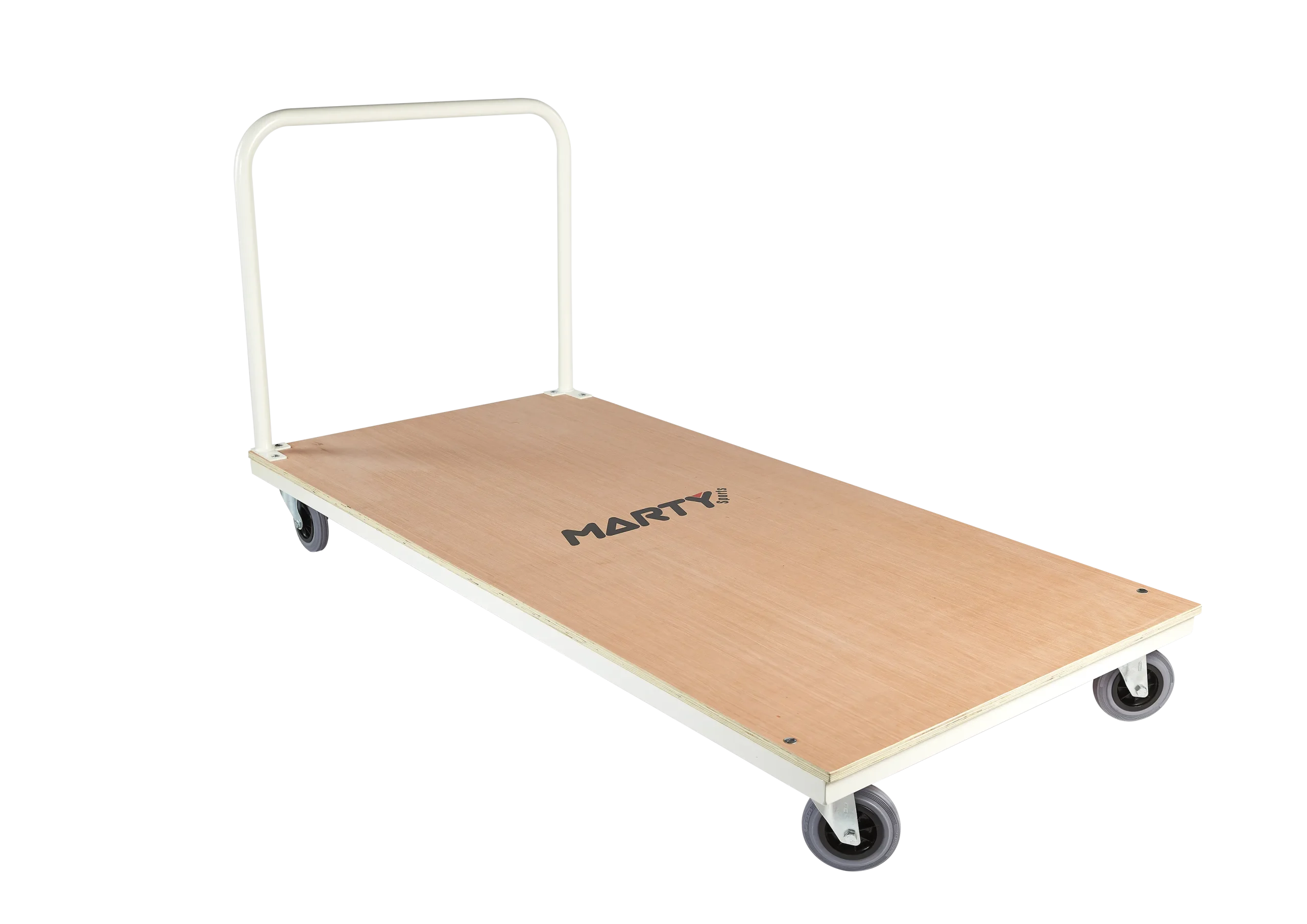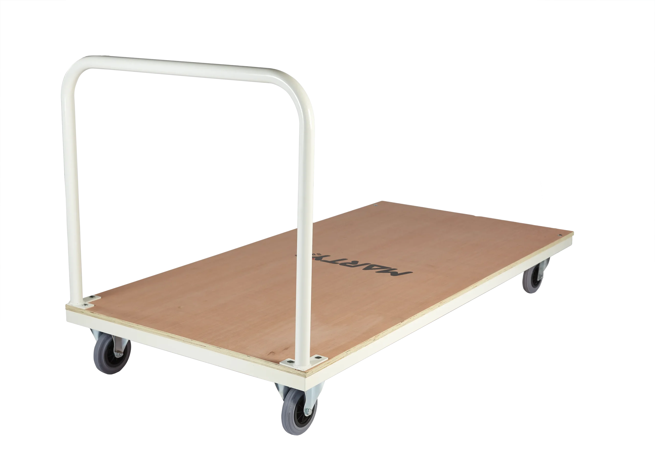 Ossature métalllique avec 4 roues Ø 160mm grise (2 roues fixes et 2 roues pivotantes) – Plateau bois – 2m00 x 1m00 –