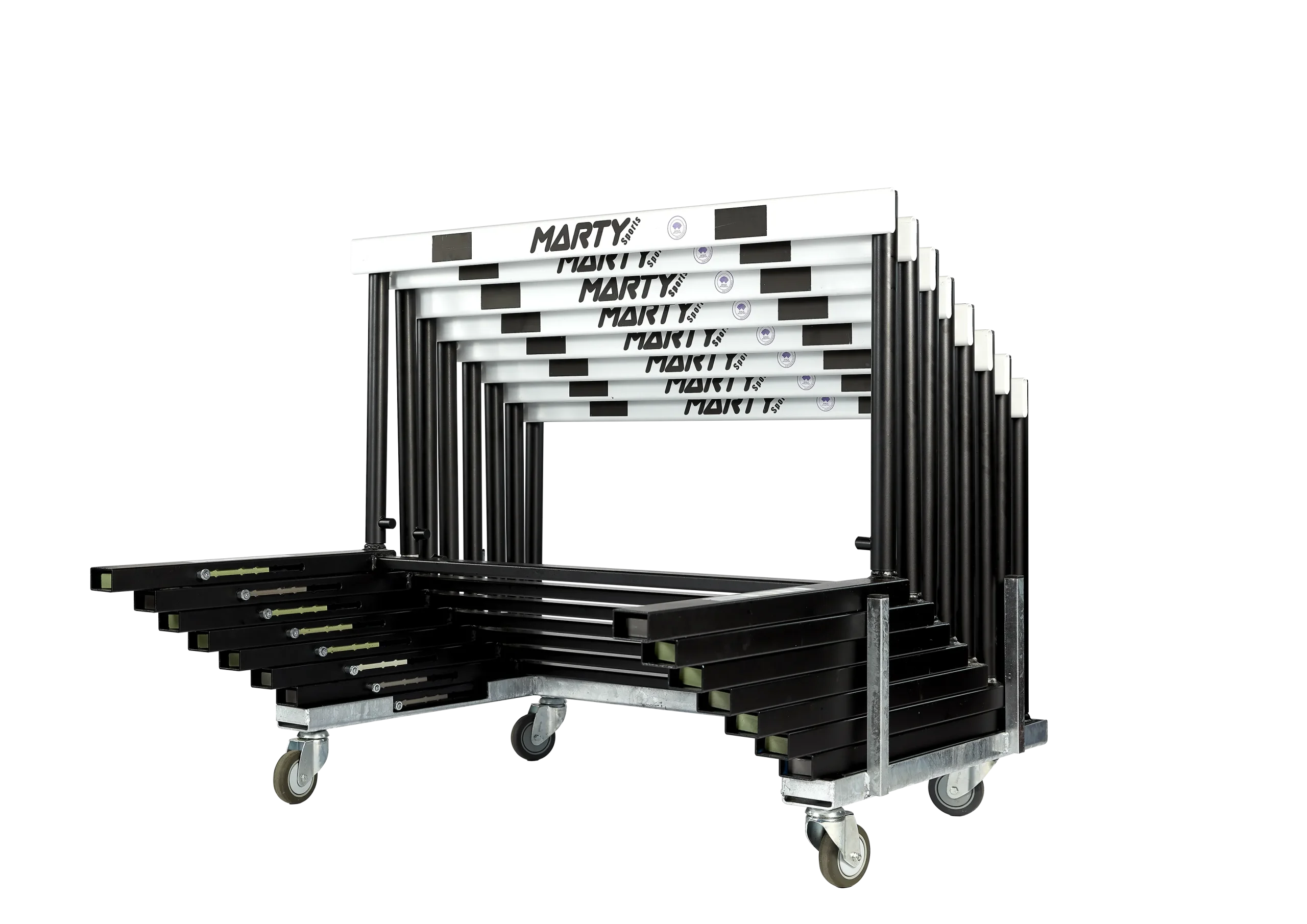 Pour transport et stockage en bout de couloir de 8 haies compétitions.