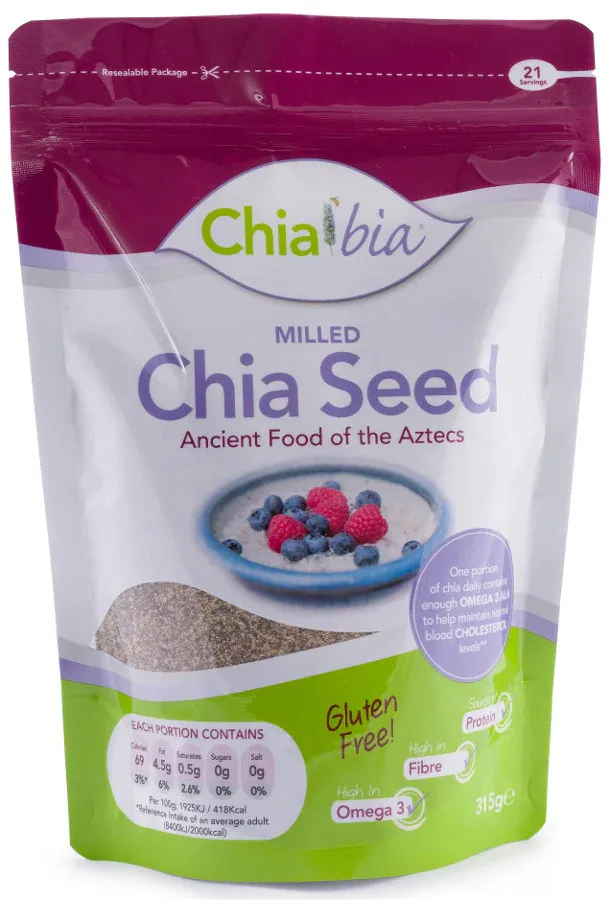 Milled Chia seed is simply the whole seed ground up, perfect for those who prefer a smoother texture rather than the crunch of the whole seed. Nothing has been added or taken away. It’s still high in fibre, protein and antioxidants and the highest known source of Omega 3 suitable for vegetarians. Simply add 15g of these milled Chia Bia seeds to your favourite cereals, salads, recipes or drinks to get more nutrients into your diet. A great way to boost energy, improve health and aid digestion.
