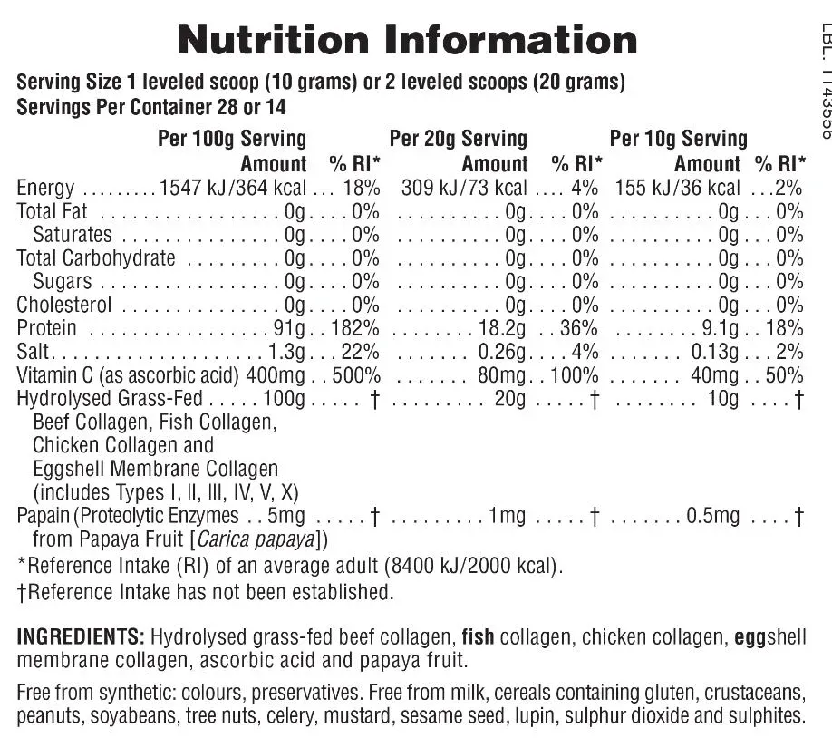 Hydrolysed grass-fed collagen, fish collagen, chicken collagen, eggshell membrane collagen 20g