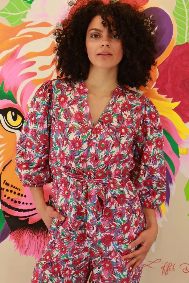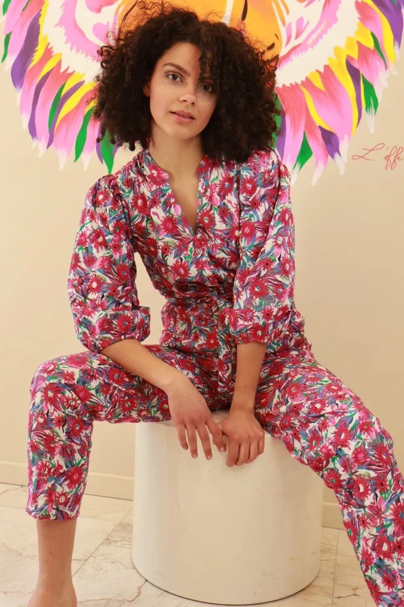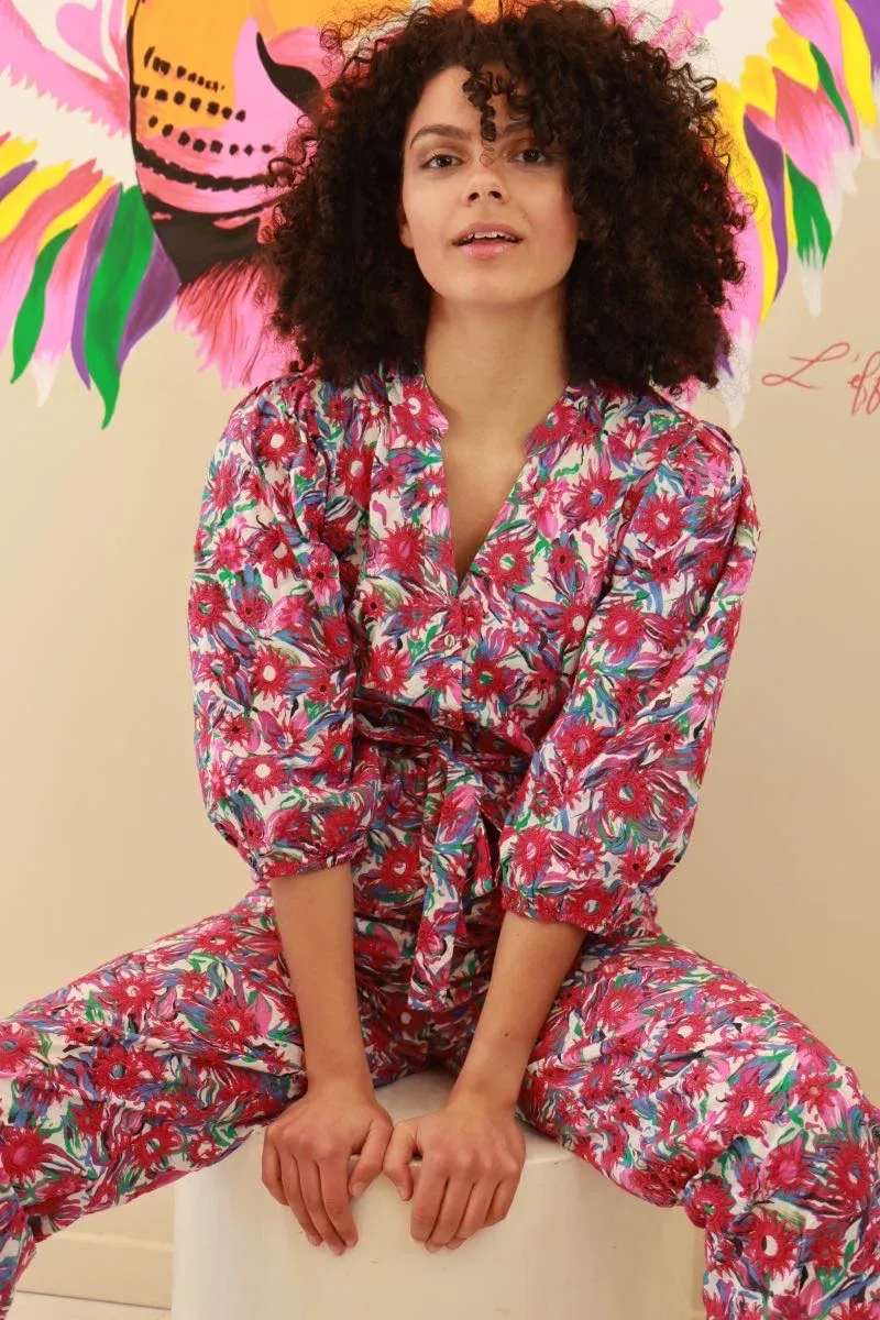 Quand la combi devient une œuvre d’art ! Cette combinaison signée Pom Amsterdam est un cocktail vitaminé de fleurs sauvages et de bonne humeur. Son imprimé explosif, tout en nuances de rose, rouge, violet et vert, réveille instantanément le look – et la journée !