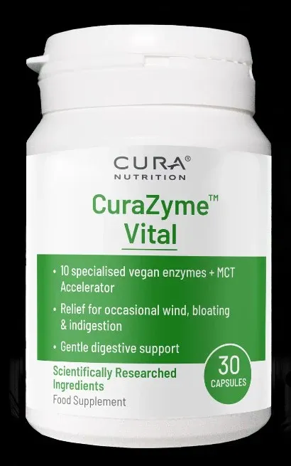 CuraZyme™ Vital is a specialised blend of 10 pharmaceutical-grade digestive enzymes utilising MCT as an accelerator. Alongside the key CuraBlend ingredients, the MCT accelerator not only helps this gentle enzyme formula significantly speed up, but it also increases the potency of the digestive enzymes.
