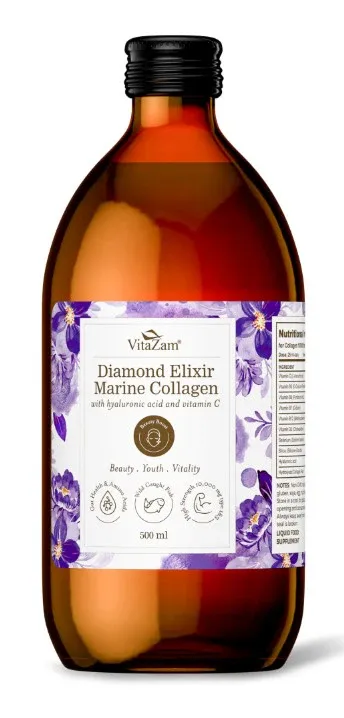 Vitazam Diamond Elixir Marine Collagen Liquid Supplement Drink, Sugar- Free, High Strength Collagen Liquid 10,000mg With Hyaluronic Acid, Vitamin C, D, Biotin for Joints Hair, Skin, Nail- 500ml