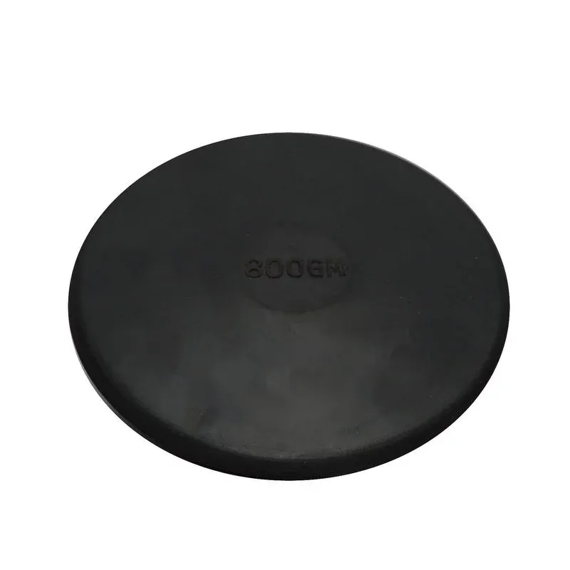 Caoutchouc noir avec pastille centrale de couleur différente en fonction du poids du disque.