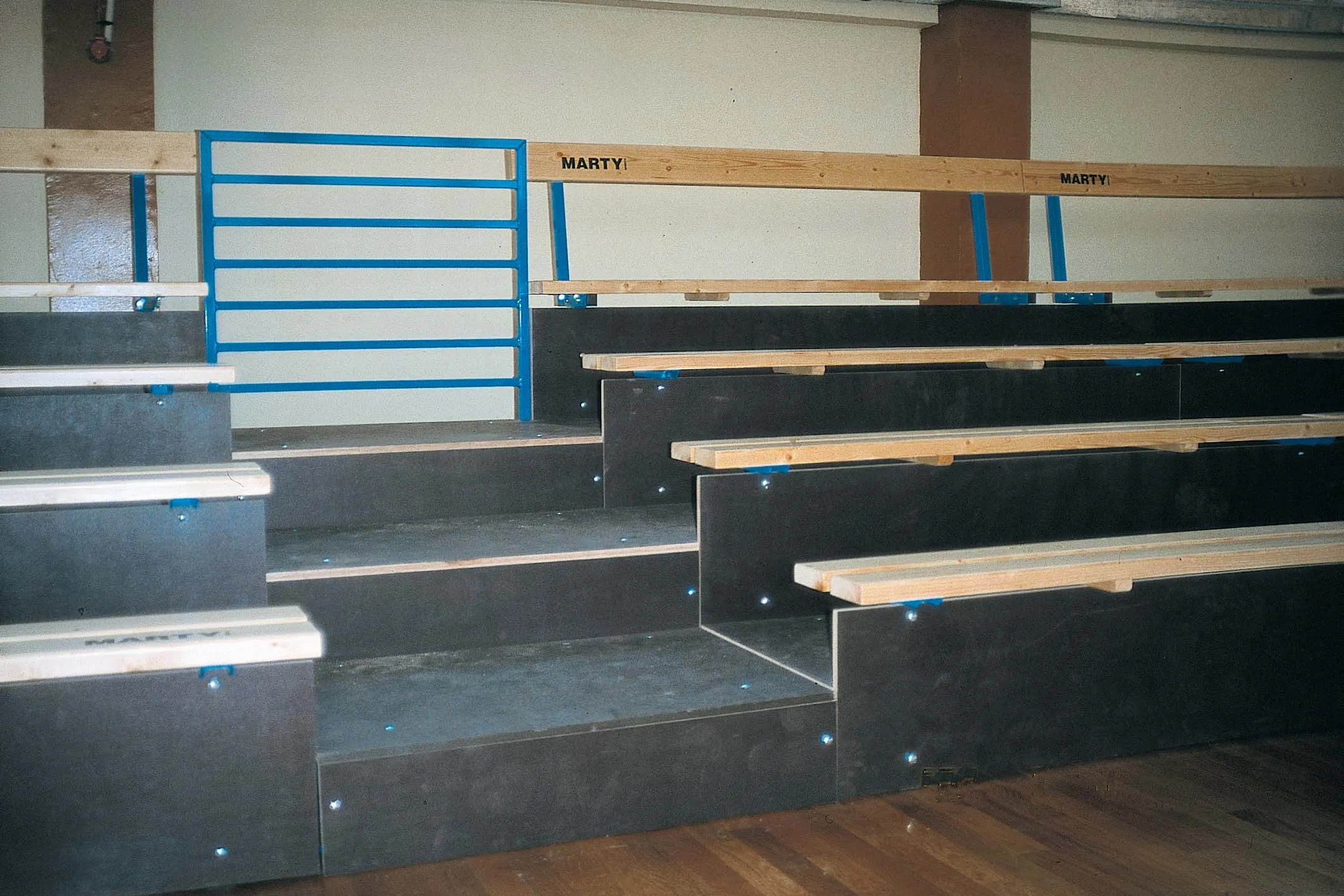 Se monte sur tribunes lorsqu’elles ne sont pas adossées à un mur. ESCAMOTABLES pour le déplacement.