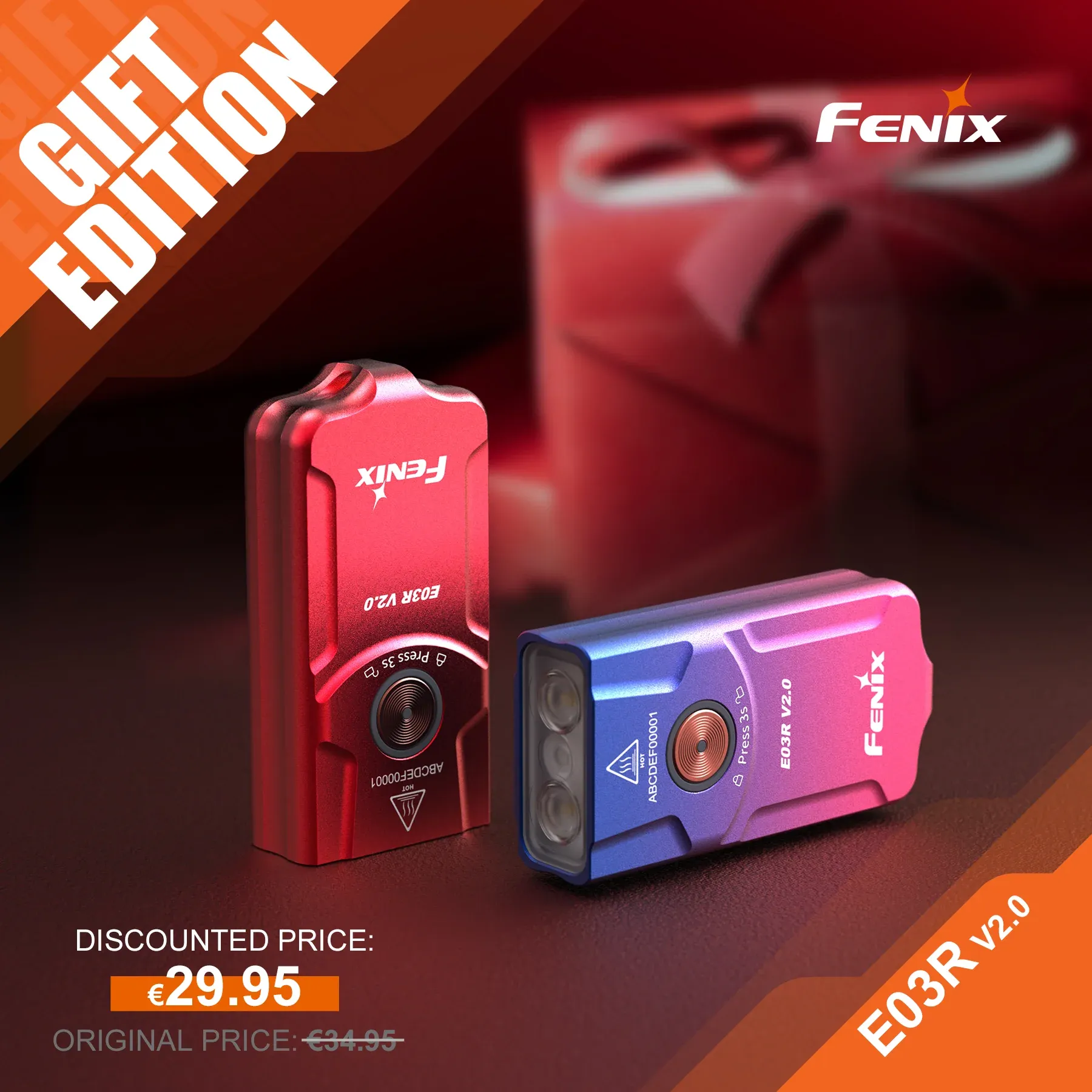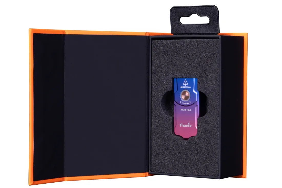 La lampe de poche porte-clés Fenix E03R V2.0 émet un maximum de 500 lumens et projette la lumière à une distance de 90 mètres. Usiné à partir de métal entièrement CNC avec environ 5cm de long, c’est la taille EDC parfaite. Rechargez rapidement via le port de charge USB Type-C. Ce qui rend la lampe plus spéciale, c’est une lumière circulaire unique construite autour de l’interrupteur. Elle est également robuste avec un indice de protection contre les éclaboussures et la poussière conforme à la norme IP66. La E03R V2.0 ferait même un excellent cadeau à vos proches. Étonnamment lumineuse pour sa petite taille, la Fenix E03R V2.0 deviendra instantanément votre lampe de poche porte-clés préférée.