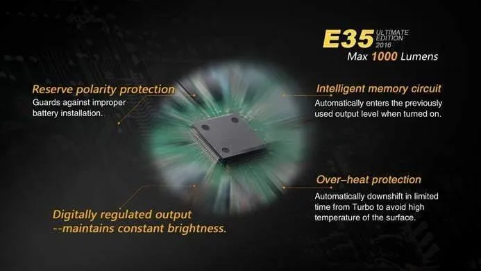 Fenix a équipé ce périphérique avec la LED XM-L2 U2 technologiquement avancé pour les meilleures sorties possibles. Une seule interface de commutation latérale allume et éteint la lumière et passe en mode. L’E35 dispose d’un mode Eco de 8 lumens et d’un mode Turbo 1000 lumens. C’est l’une des lampes de poche les plus pratique sur le marché. Elle s’est fait un nom pour être un périphérique fiable et direct.