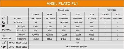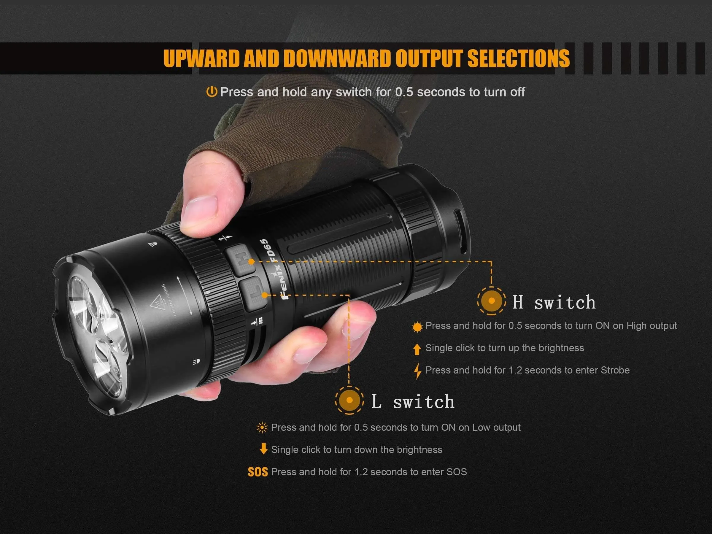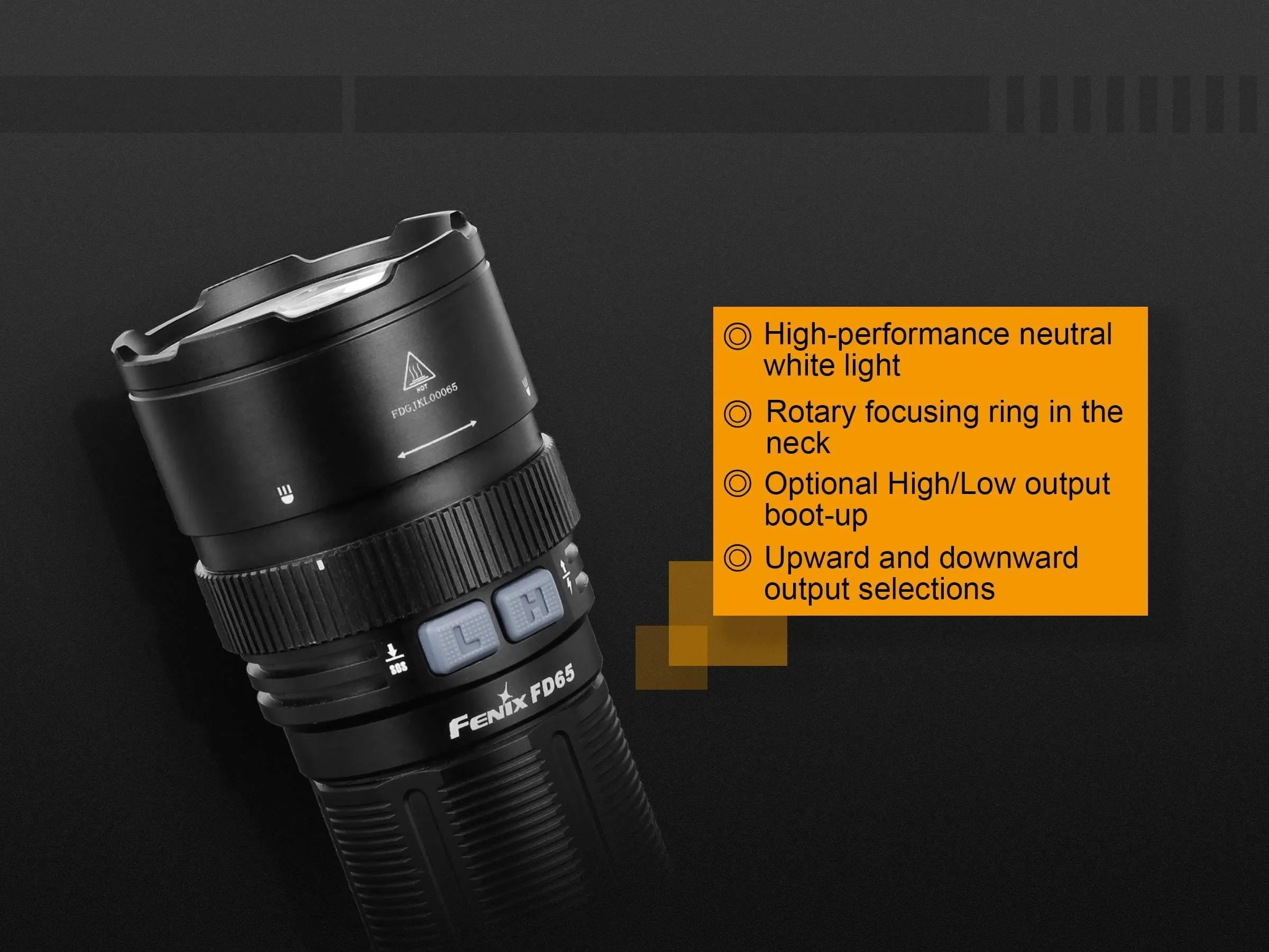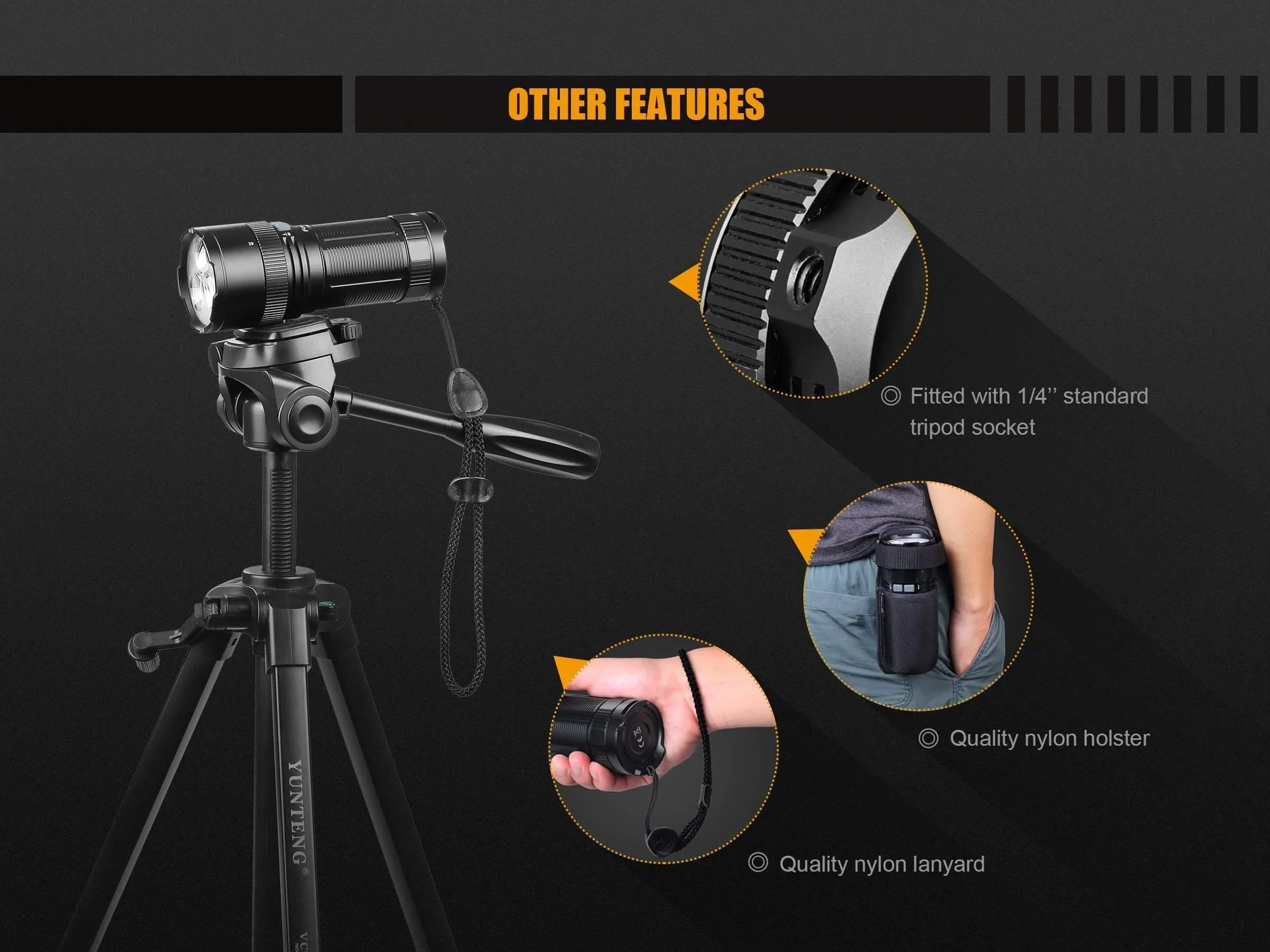 La lampe de poche focalisable à LED Fenix FD65 est équipée de trois LED blanches neutres Cree XHP35 HI. Elle comprend également une lentille optique TIR efficace qui émet une puissance maximale de 3800 lumens et une distance de faisceau de 1 345 pieds / 410 mètres. La rotation de la bague de mise au point sur le Fenix FD65 déplace la tête vers l’avant et vers l’arrière, ce qui entraîne un changement entre le spot et le projecteur.Fonctionnement simple à deux boutons – cliquez sur le commutateur « H » pour augmenter la puissance et augmenter la luminosité, puis cliquez sur le commutateur « L » pour activer la sortie basse et diminuer la luminosité. Il est normalement alimenté par quatre batteries rechargeables Li-ion 18650.Vous êtes en mesure d’utiliser seulement deux batteries 18650 en cas d’urgence. Avec une protection IP68, une fonction momentanée sur stroboscope et SOS, la Fenix FD65 est la lampe de poche idéale pour la spéléologie, la photographie extérieure,