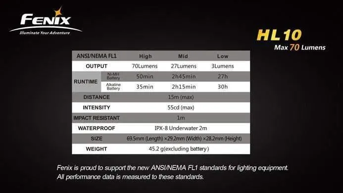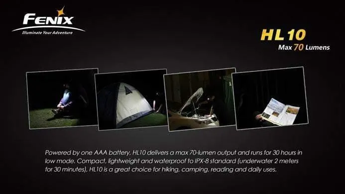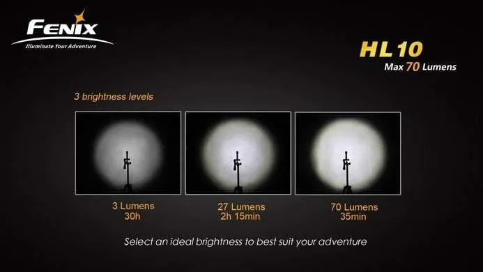 La HL10 fonctionne avec 1 pile LR03/AAA et produit jusqu’à 70 lumens,
