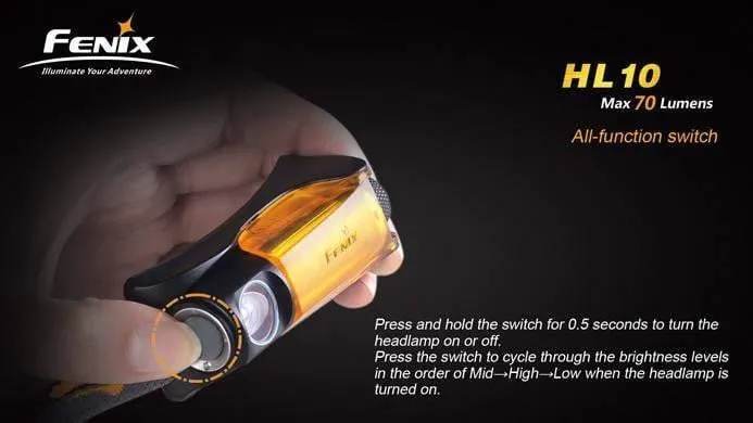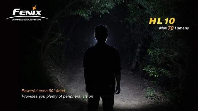 La lampe frontale Fenix HL10 est ultra polyvalente avec ces 3 modes d’éclairage, elle dispose d’une puissance maximum de 70 Lumens ANSI, et d’un rayonnement à 100° pour une diffusion lumineuse large.