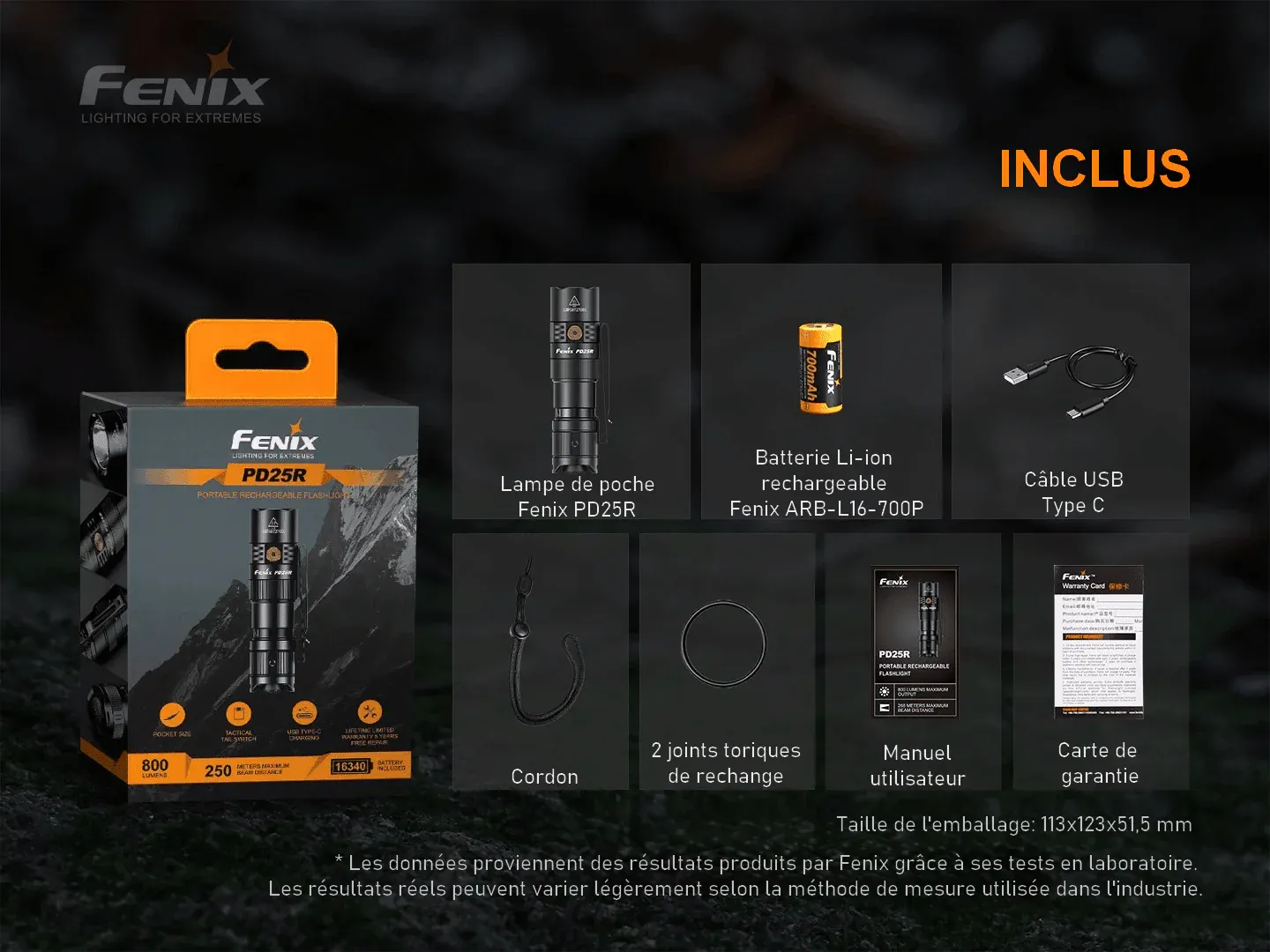 - Inclus : Batterie rechargeable Fenix ARB-L16-700P 16340.