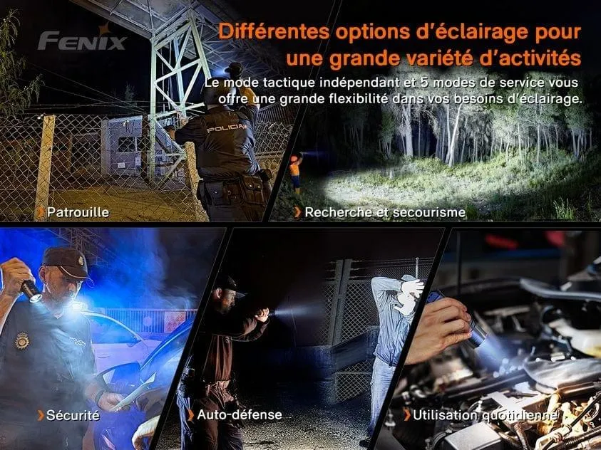 Le stroboscope instantané, la fonction de verrouillage, le corps plat et les doubles commutateurs arrière uniques permettent à la Fenix TK35UE V2.0 de se préparer à répondre en toute confiance aux besoins des militaires, des forces de l’ordre et des amateurs de plein air. Ne comprend pas les piles. Dispositif de charge vendu séparément.