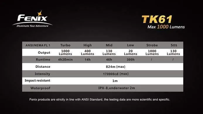 Bien évidemment, la Fenix TK61 possède toutes les caractéristiques que vous pouvez attendre d’une lampe.