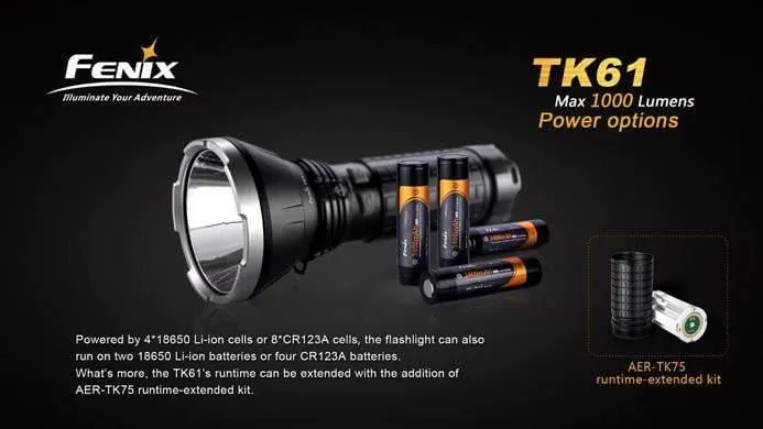 Le TK61 possède un boîtier robuste, son extension peut fonctionner avec 8 accus 18650. Ainsi le temps d’éclairage est doublé.