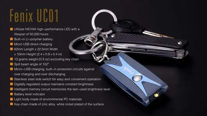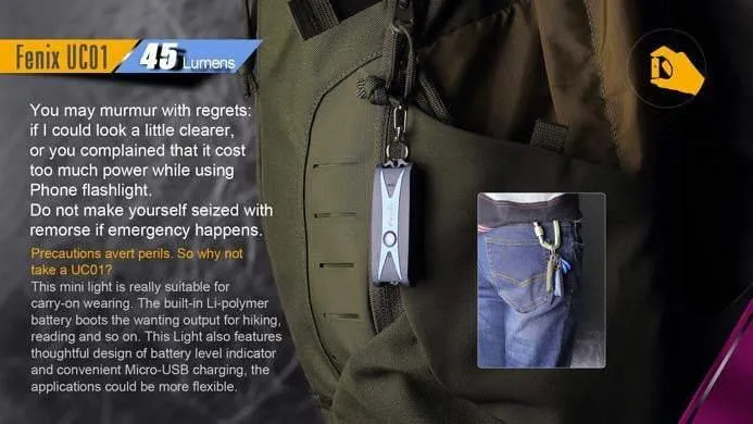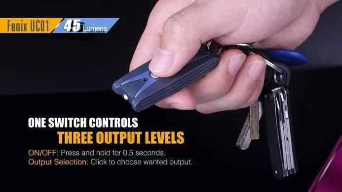 Une petite lumière Fenix pour trousseau de clés modèle Fenix UC01. Si vous devez resserrer, par exemple, une petite vis de votre moto dans l’obscurité. Ou lorsque vous devez éclairer à plus de 5 mètres devant vous. Ou bien encore lorsqu’un objet est tombé de vos poches. Le modèle UC01 est toujours à portée de main et vous rendra bien des services sur simple pression d’un bouton.