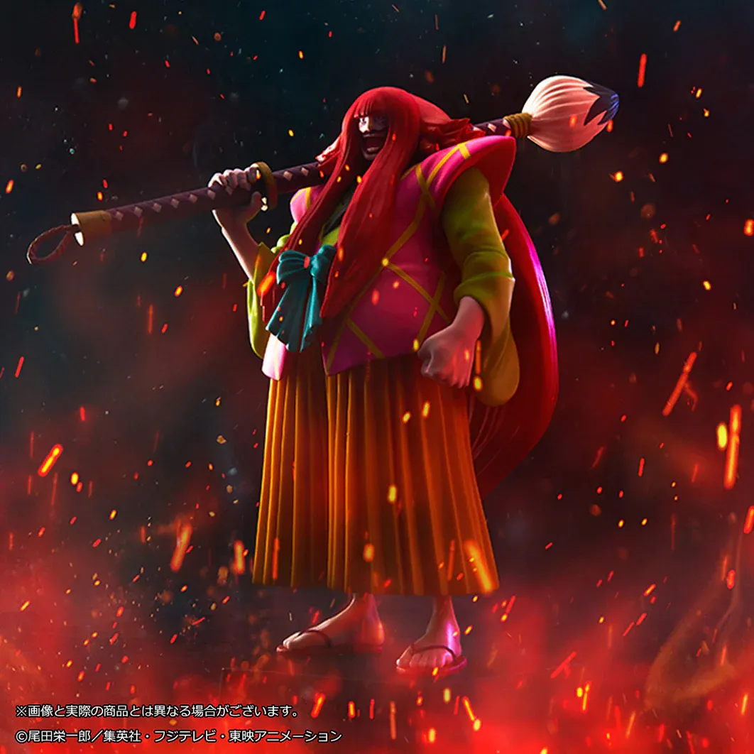 La figurine reflète également les éléments artistiques qui définissent Kanjuro, notamment son talent unique pour créer des dessins vivants grâce à son pinceau géant. Son kimono coloré et son regard énigmatique rappellent sa double identité et ses motivations cachées. Ajoutez cette pièce à votre collection pour célébrer l’un des arcs les plus captivants de One Piece !