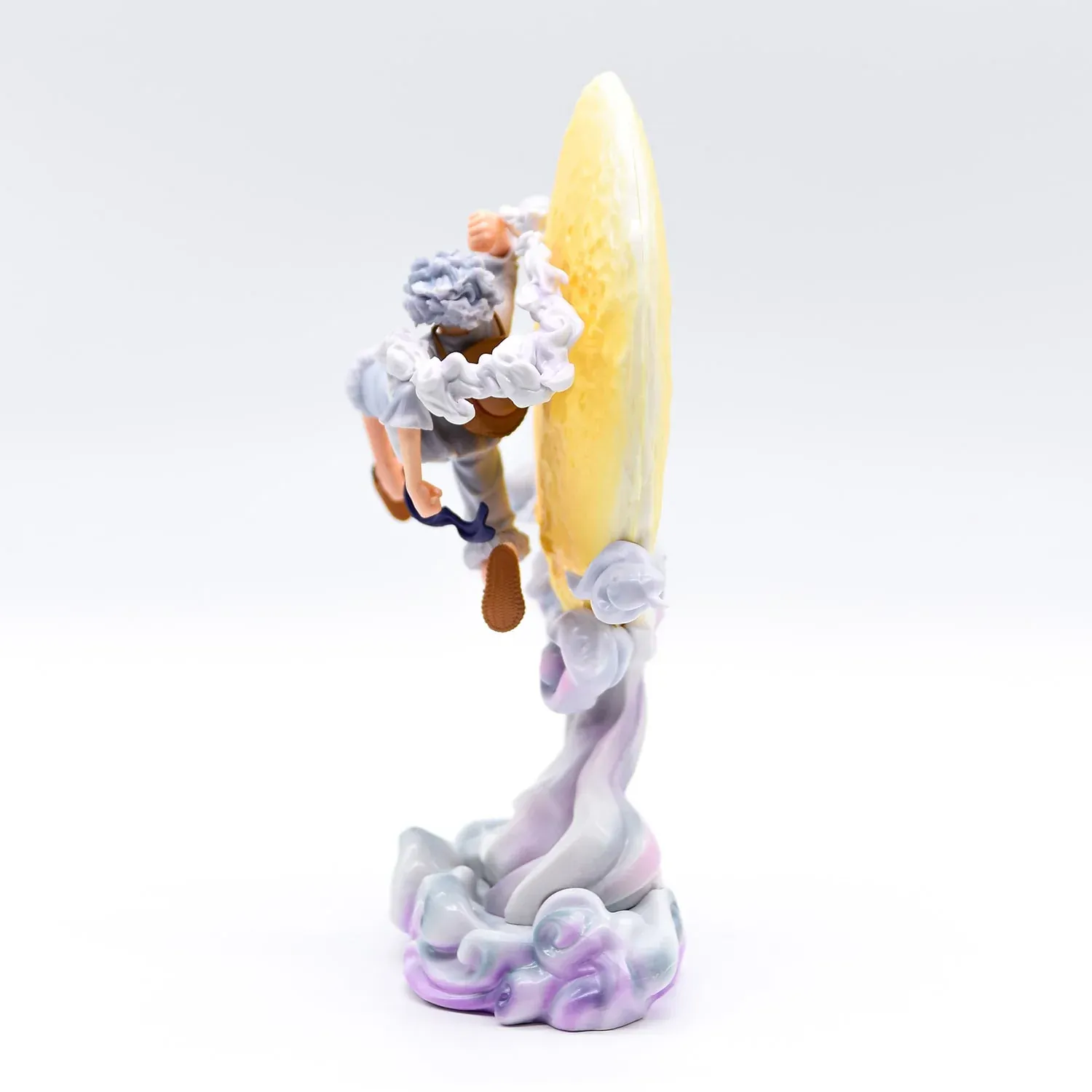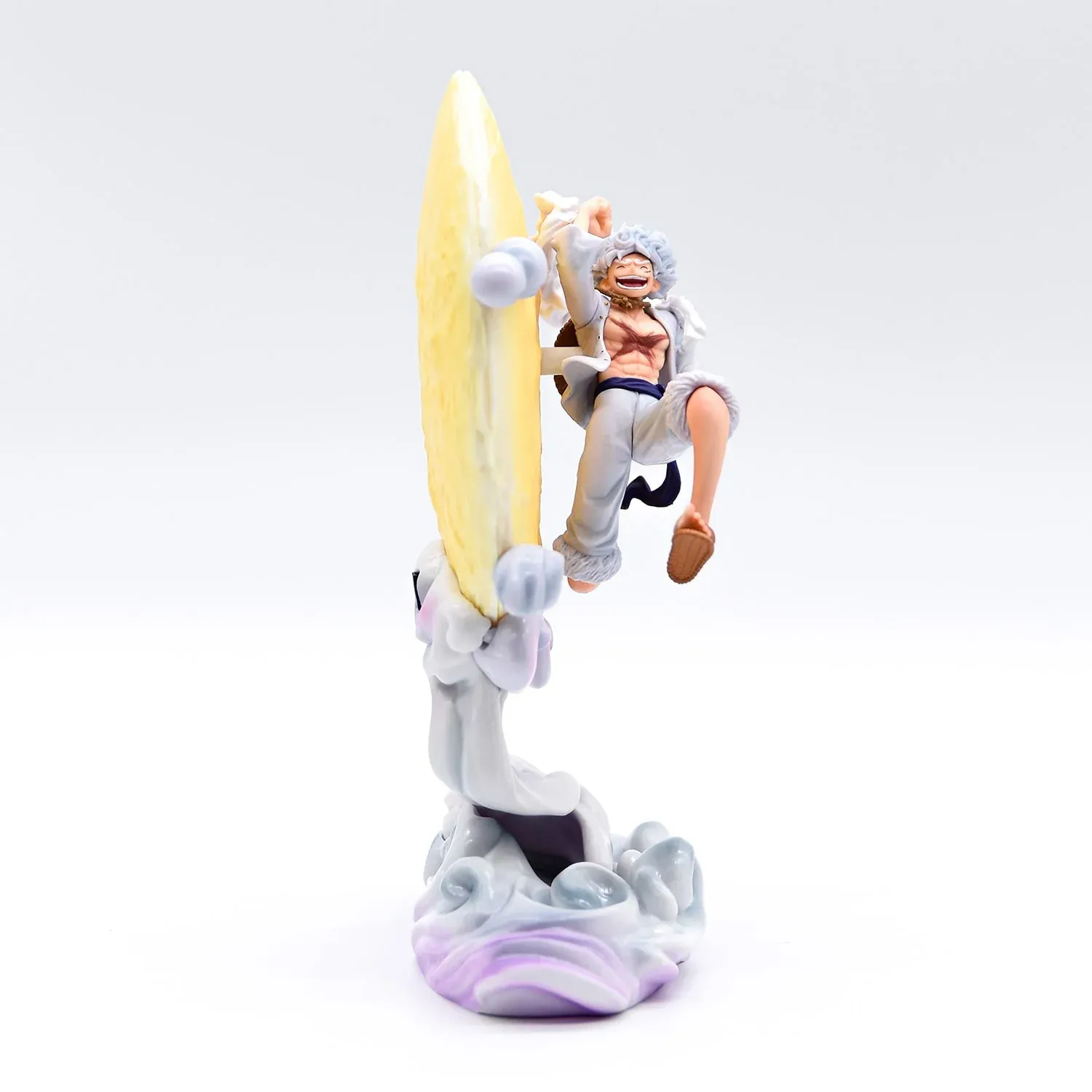 La LED intégrée à la lune offre une ambiance mystique, mettant en valeur la transformation puissante de Luffy. La lumière ajoute une dimension dynamique à la figurine, capturant l’essence du Gear 5.