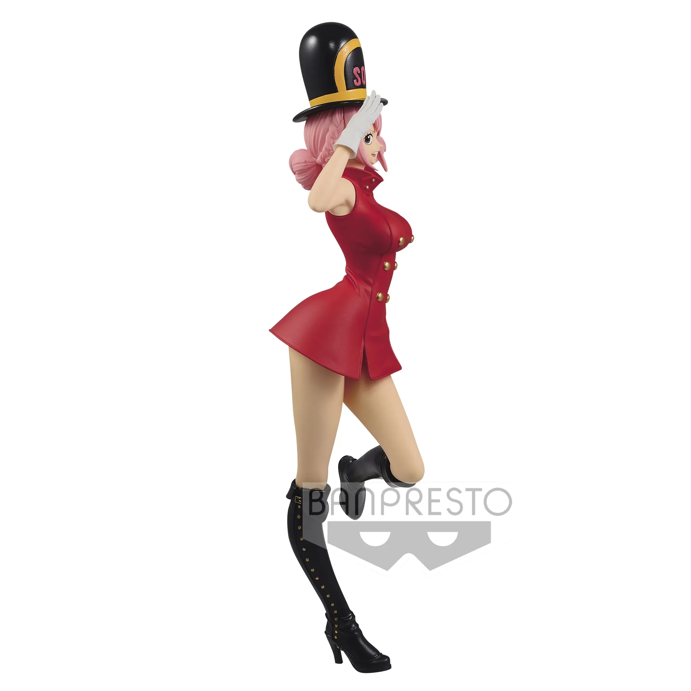 Plongez dans l’univers de One Piece avec cette somptueuse figurine Rebecca Sweet Style Pirates Dark Ver. A, une création de Banpresto qui ne manquera pas d’émerveiller les passionnés de la saga. Issue de la gamme Sweet Style Pirates, cette figurine met en avant un design alternatif de Rebecca, sublimé par une tenue inédite et un style détaillé. Contrairement à son armure de gladiatrice vue dans l’arc de Dressrosa, cette version propose un look plus élégant et audacieux. Son uniforme rouge ajusté, agrémenté de boutons dorés et d’un chapeau haut-de-forme marqué “SOL”, lui confère une allure raffinée et charismatique. Sa posture dynamique, la main levée en signe de salut et un sourire éclatant, apporte une touche de fraîcheur et d’assurance à cette représentation.