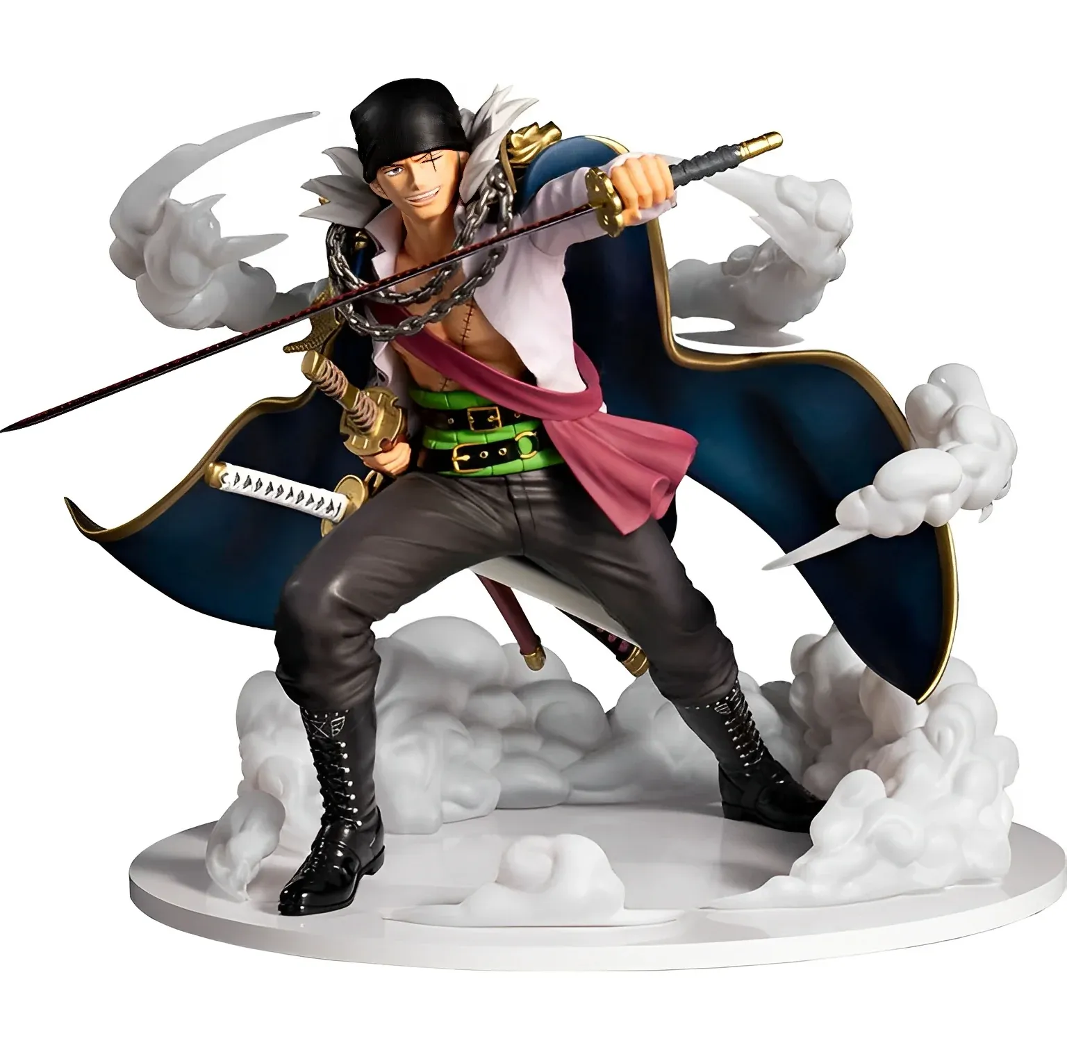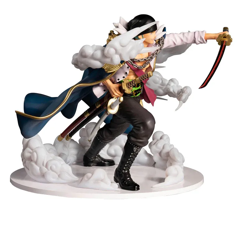 Cette version « New World » marque une étape importante dans l’évolution du personnage, reprenant son apparence après l’ellipse temporelle. Arborant son long manteau noir de capitaine, un bandeau noué sur la tête et ses trois katanas iconiques, cette figurine est un véritable hommage à son charisme indétrônable. Chaque détail, de la peinture précise aux effets de vent sculptés dans la cape, témoigne du savoir-faire de Bandai Namco pour offrir aux collectionneurs une réplique fidèle et immersive.