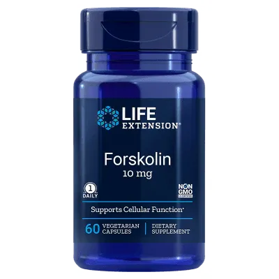 Derived from the ancient medicinal plant, Forskolin’s basic mechanism of action is the activation of an enzyme, adenylate cyclase. This enzyme increases cyclic adenosine monophosphate (cAMP) in cells, perhaps the most important cell-regulating compound. Once formed it activates many other enzymes involved in diverse cellular functions.