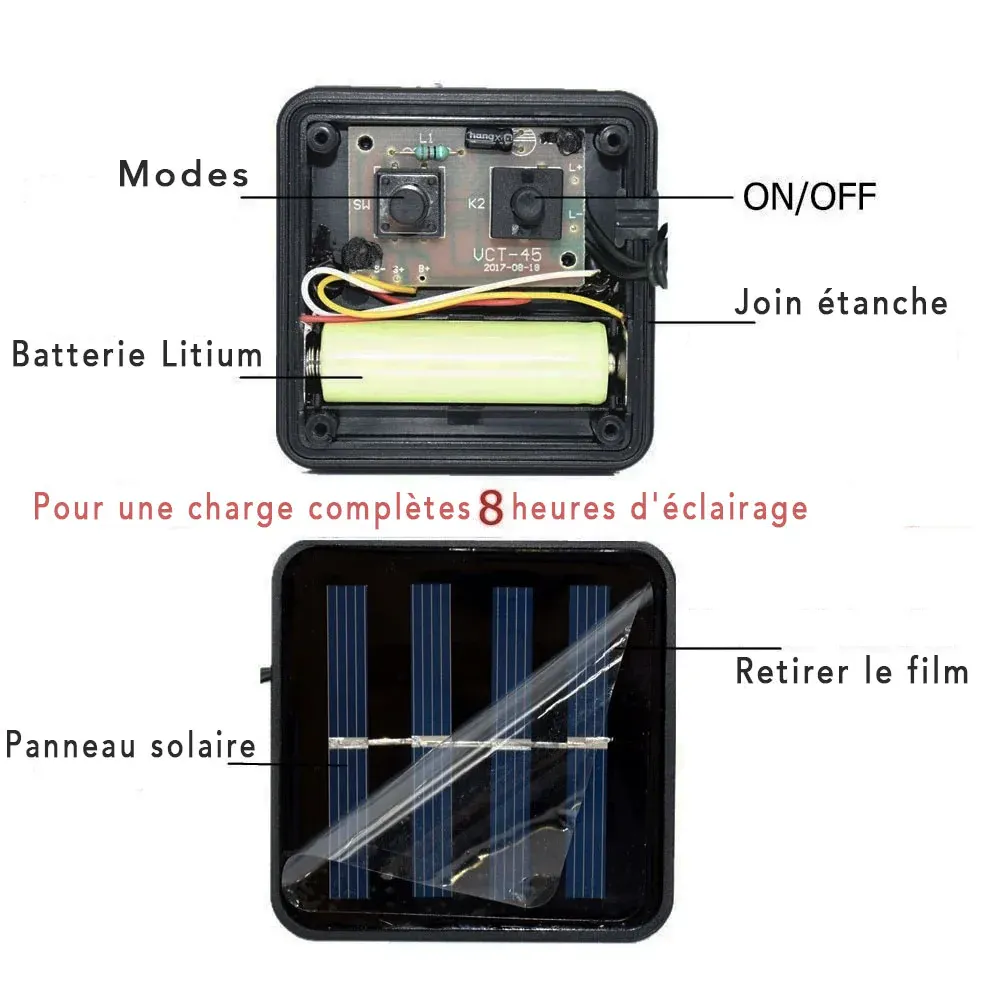 - 6h charge rapide solaire / 12h longue lumière gratuite