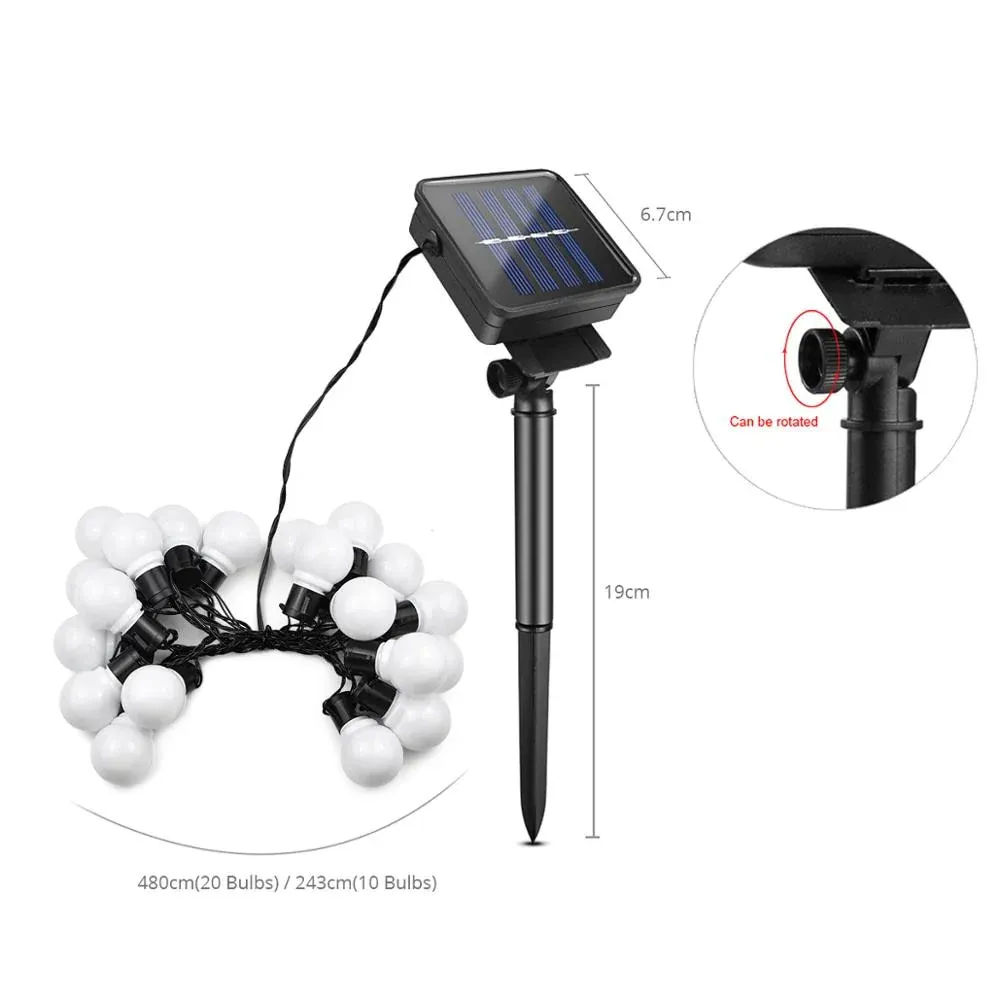 Guirlande solaire extérieur avec ampoule claire ou blanche idéale pour embellir votre jardin. Avec la puissance de la LED très économe c’est l’éclairage parfait. Adoptez l’énergie verte pour une maison plus écoresponsable.