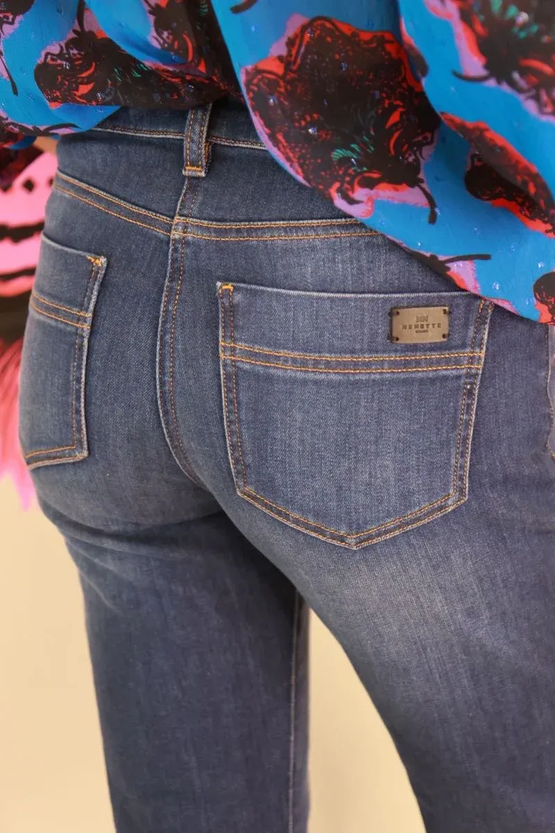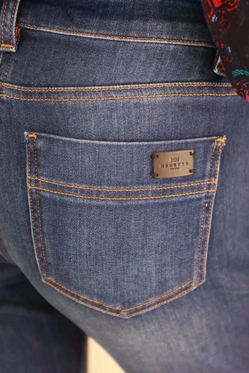 Bienvenue dans ton nouveau coup de cœur avec ce jean Nenette 7/8, une pièce qui allie style et confort à la perfection ! En taille 36, ce jean au bleu profond offre une coupe 7/8 légèrement resserrée à la cheville, idéale pour mettre en valeur tes silhouettes avec une touche moderne et décontractée.
