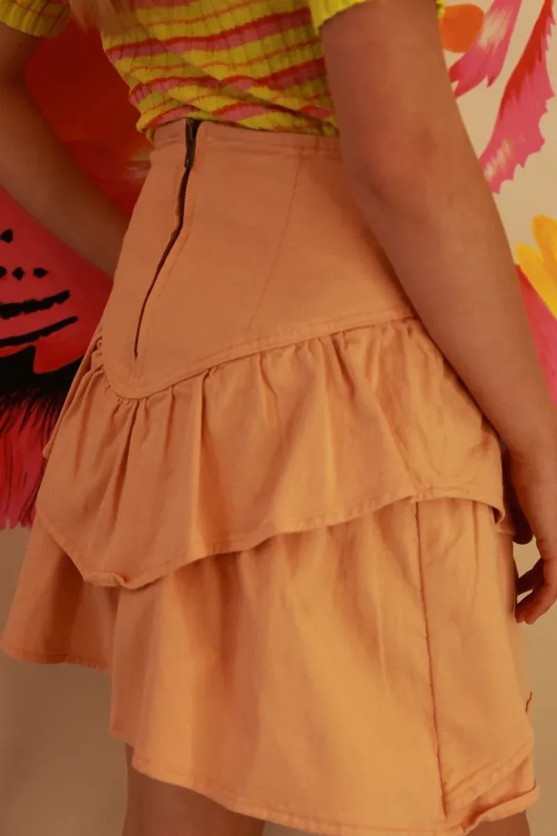 Prépare-toi à tomber amoureuse de cette jupe Bérénice, une petite merveille de seconde main qui allie douceur et originalité ! En taille 38, elle enveloppe ta silhouette avec sa teinte pêche délicate qui évoque les couchers de soleil d’été. Ses volants superposés et sa coupe asymétrique apportent une touche bohème chic pleine de caractère, parfaite pour celles qui aiment se démarquer avec élégance.