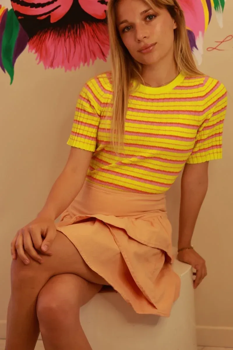 À porter avec un haut coloré, des sandales et des bracelets dorés pour un style estival joyeux !