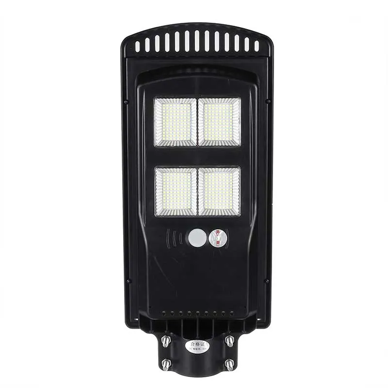 Lampadaire solaire avec détecteur mouvement PIR et régulateur de lumière à 30% en mode normal et 100% pendant 40 secondes après détection. Fixez-le sur un mur à l’entrée de votre maison et rentré chez vous en toute sécurité.