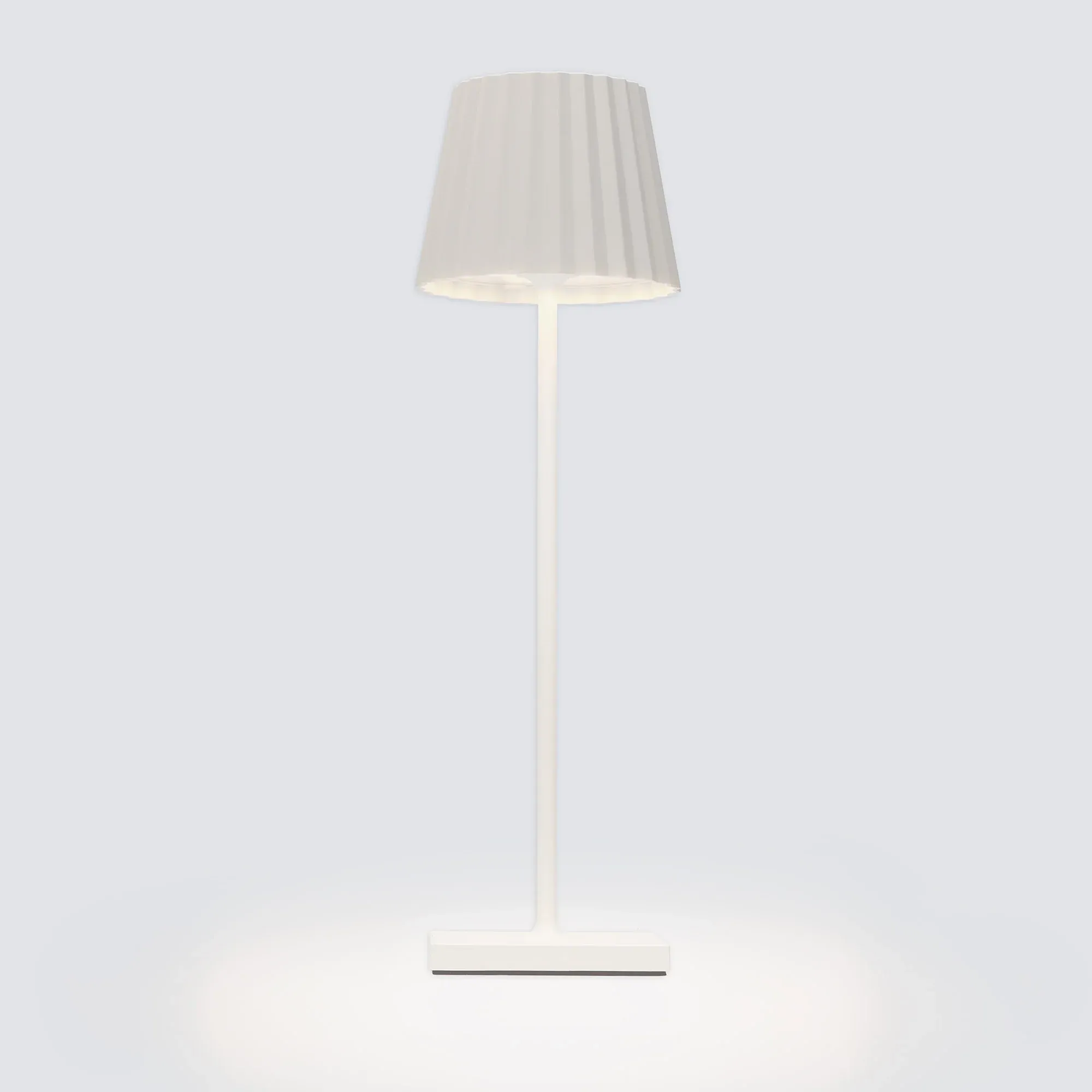 La lampe de table portable sans fils NIGHT est alimentée par une batterie avec chargeur USB, dont l’autonomie peut atteindre 9 heures.