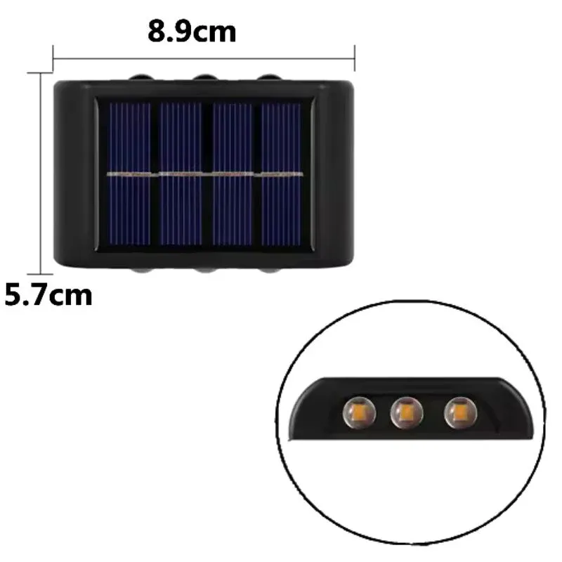 - Matériel du corps : Dotée d’un boîtier résistant aux intempéries, notre lampe murale solaire de jardin est conçue pour résister aux conditions extérieures les plus difficiles, assurant une durabilité maximale et une performance constante année après année.