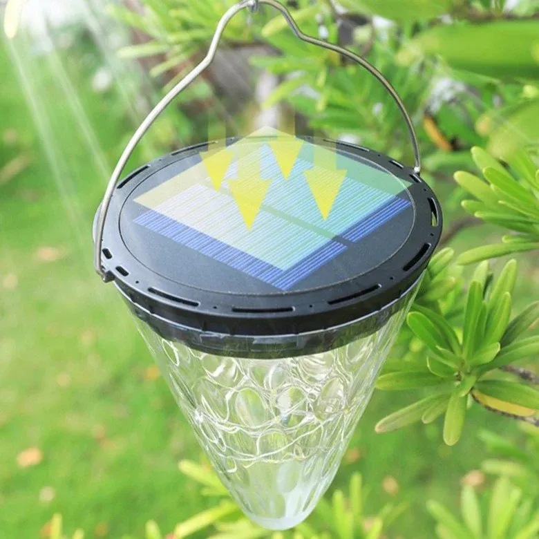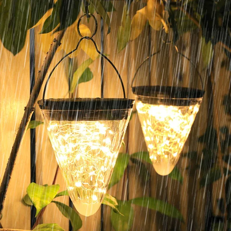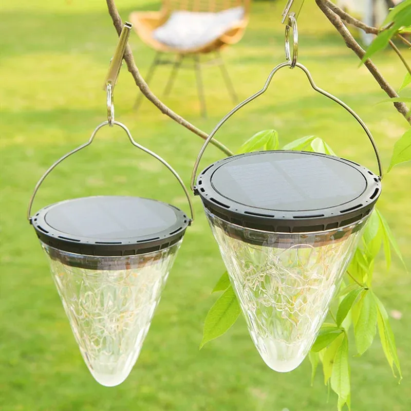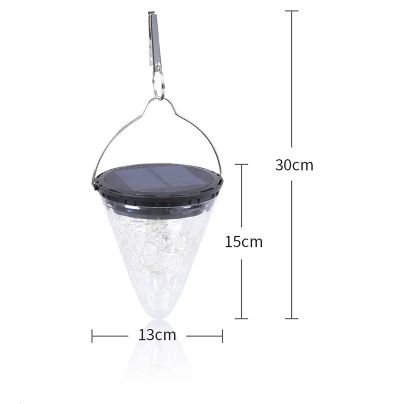 Lampe solaire en forme de conique à suspendre idéal pour décorer votre terrasse. Avec la puissance de la LED très économe c’est l’éclairage parfait. Adoptez l’énergie verte pour une maison plus écoresponsable.
