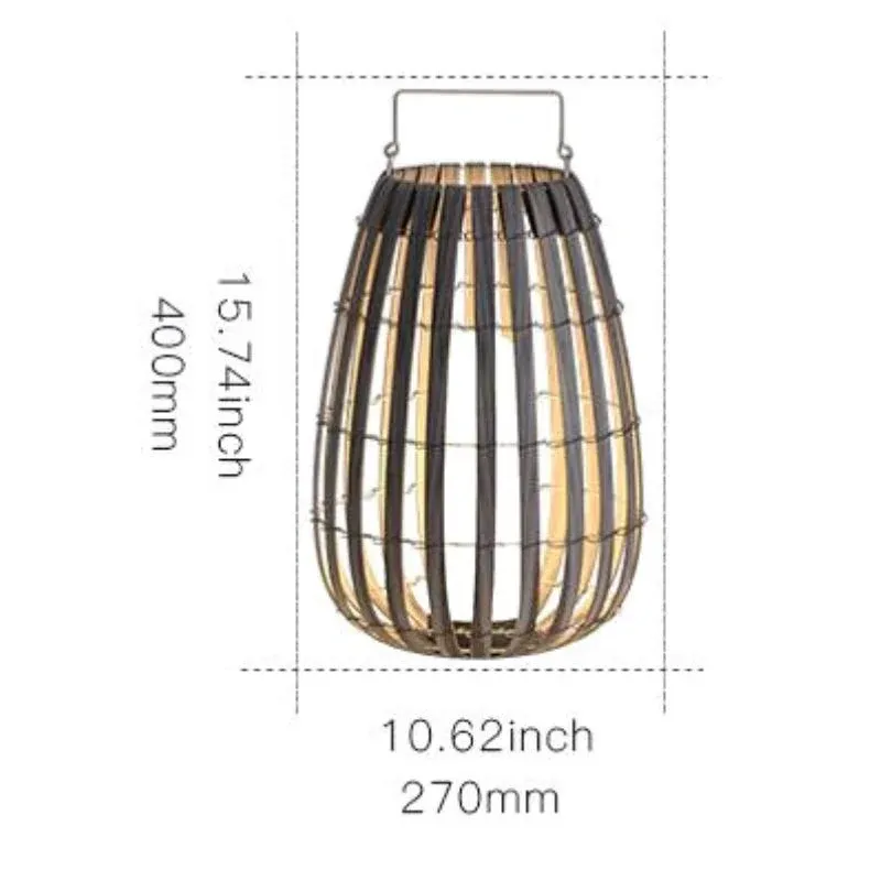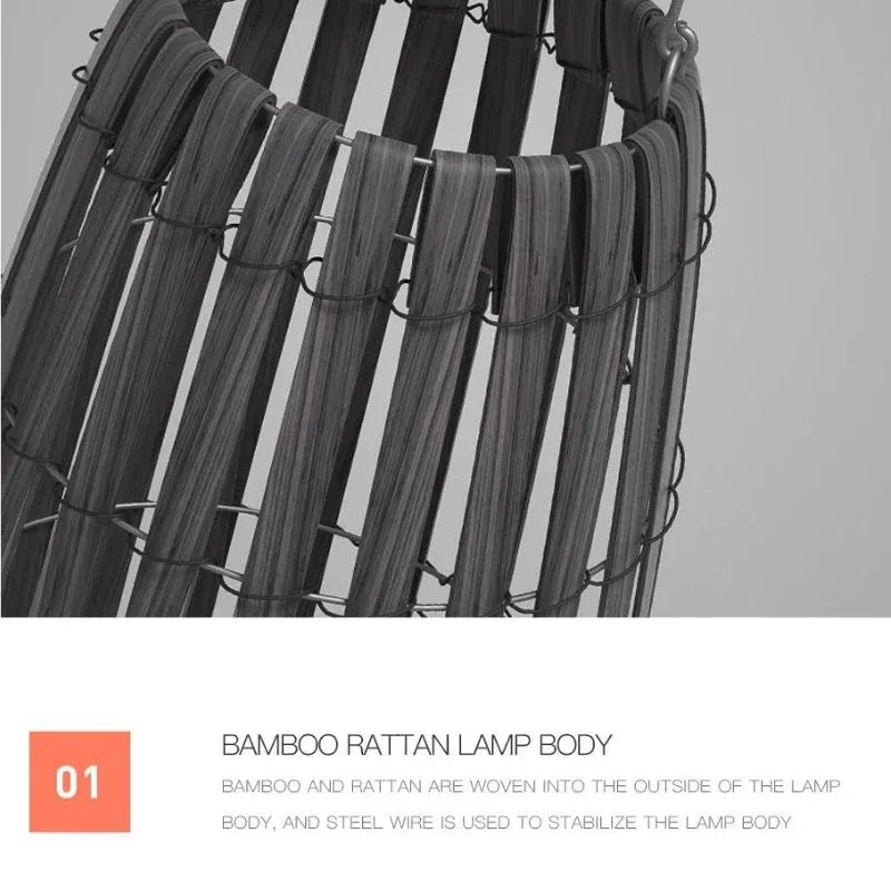 Lampe de table solaire design avec un style moderne, le bambou et le rotin sont tissés à l’extérieur du corps de la lampe et un fil d’acier est utilisé pour stabiliser le corps de la lampe. Adoptez l’énergie verte pour une maison plus écoresponsable.