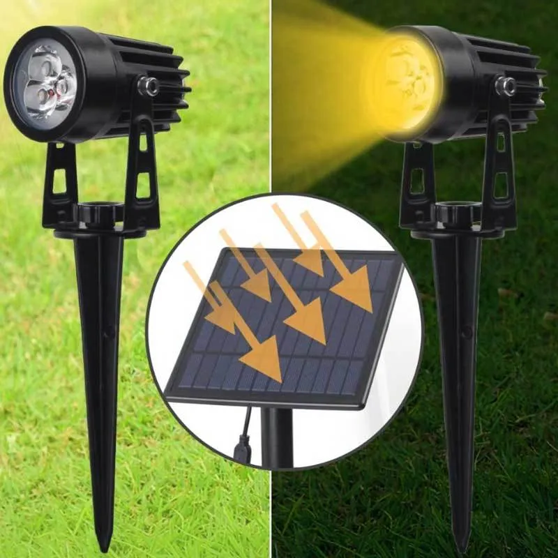 Quatre spots Solaires avec de puissantes LED Multicolore. Utiliser ces projecteurs solaires dans votre jardin, vous pourrez mettre une lumière colorer sous vos arbres en piquant les lampes multicolores sur votre gazon.