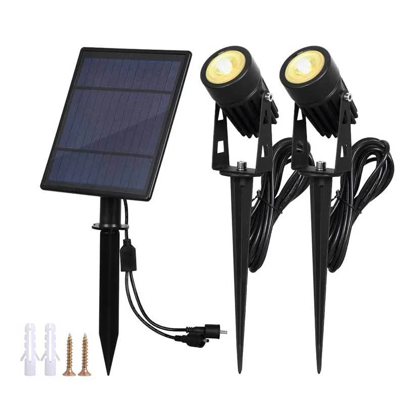 Super spot Solaire avec deux puissantes LED. Utiliser ces projecteurs solaires dans votre jardin, vous pourrez mettre en lumière vos plus beaux arbustes en piquant les lampes jaunes sur votre pelouse.